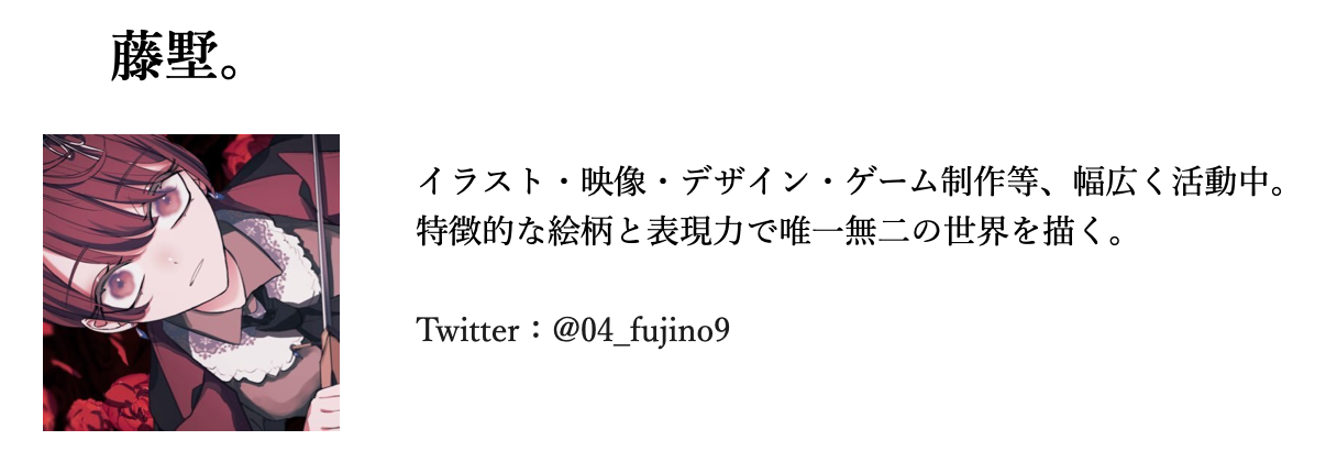 三浦隆一 2011 年「空想委員会」でインディーズデビュー。 2014 年「空想委員会」でメジャーデビュー。 2019 年 4 月 1 日をもって「空想委員会」の現体制での活動を終了。 ソロ活動をスタート。 2021年4月15日にソロデビューアルバム「空集合」をリリース。 2020年4月より空想委員会の活動再開を発表。 2021年12月29日にアルバム「世渡り下手の愛し方」をリリース。レインボータウン FM、八戸BeFMでラジオメインパーソナリティを担当。 オンラインサロン「三浦隆一 妄想向上委員会」の運営、YouTubeチャンネル「物見遊山TV」で自身の活動の発信、アパレルブランド「HONZYNAS」のプロデュースも行っている。 |