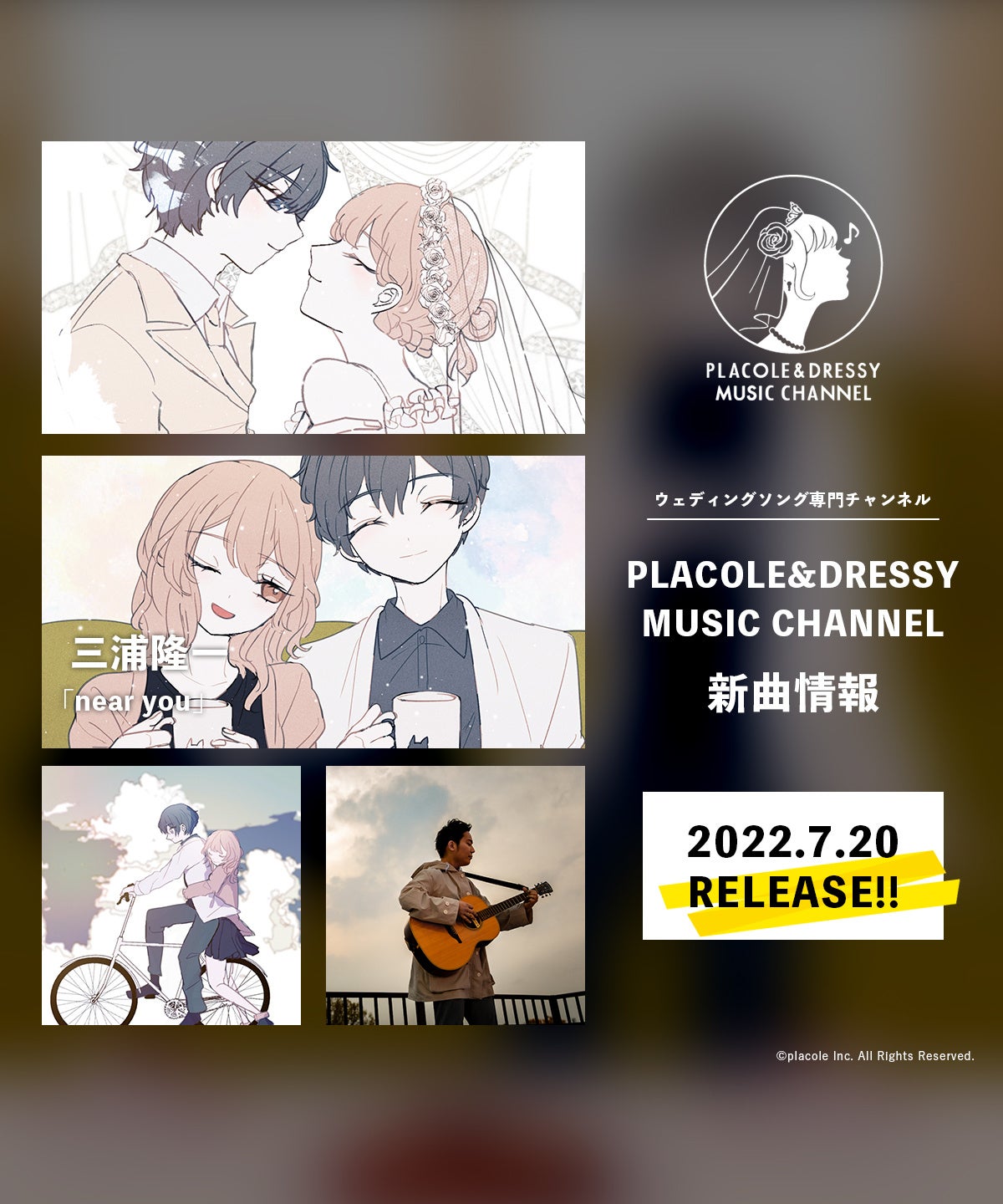「PLACOLE & DRESSY」ブランドを展開する、冒険社プラコレ(本社:神奈川県鎌倉市、代表取締役CEO:武藤功樹)は、結婚式で自由に使える新曲を毎月配信するウェディングソング専門チャンネル「PLACOLE&DRESSY MUSIC CHANNEL」にて7月は、 バンド「空想委員会」のボーカル・ギター「三浦隆一」とタイアップ曲を配信することが決定致しました。