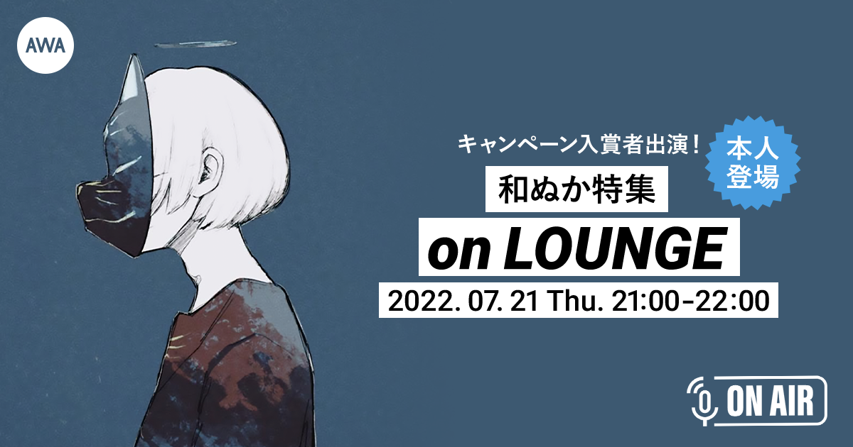 今回のイベントは、1stアルバム『青二才』のリリースを記念して開催されるもので、アルバム収録曲を一挙オンエアいたします。本イベントでは本人も音声とチャットでリアルタイムに参加。また、先日開催された本イベントのMC/歌唱出演権争奪キャンペーン受賞者4名も出演し、番組進行や和ぬかの楽曲を披露します。LOUNGEは、どなたでも参加することができ、AWAアプリを事前にダウンロードしていれば、リクエストやアーティストとの交流など、より手軽にお楽しみいただけます。ぜひ、和ぬか本人登場のラジオ配信ラウンジをお楽しみください。