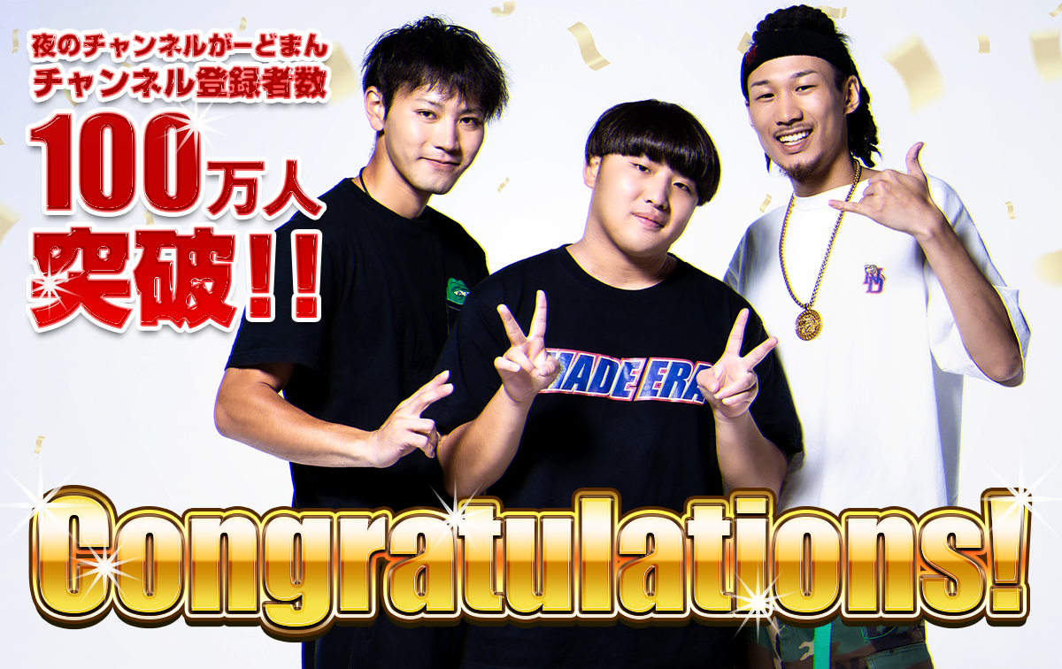 「チャンネルがーどまん」のサブチャンネル「夜のチャンネルがーどまん」がチャンネル登録者数100万人突破したことをお知らせ致します。