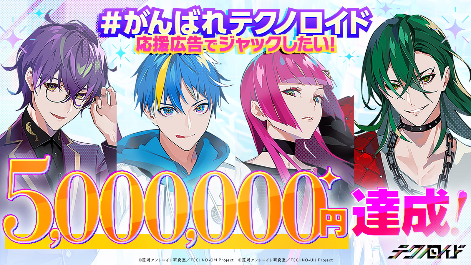 また、5月31日(火)より応援購入サービス「Makuake」にて開催している「#がんばれテクノロイド 応援広告でジャックしよう!」プロジェクトの応援購入受付が本日21日(木)で最終日を迎え、皆様の多大なる応援のおかげでストレッチゴールである500万円を達成いたしました。ストレッチゴールを達成したため、応援広告やリターンで使用するLAM描き下ろしイラストに掲載されるキャラクターが増え、また応援広告の掲示場所が広がることが決定いたしました。