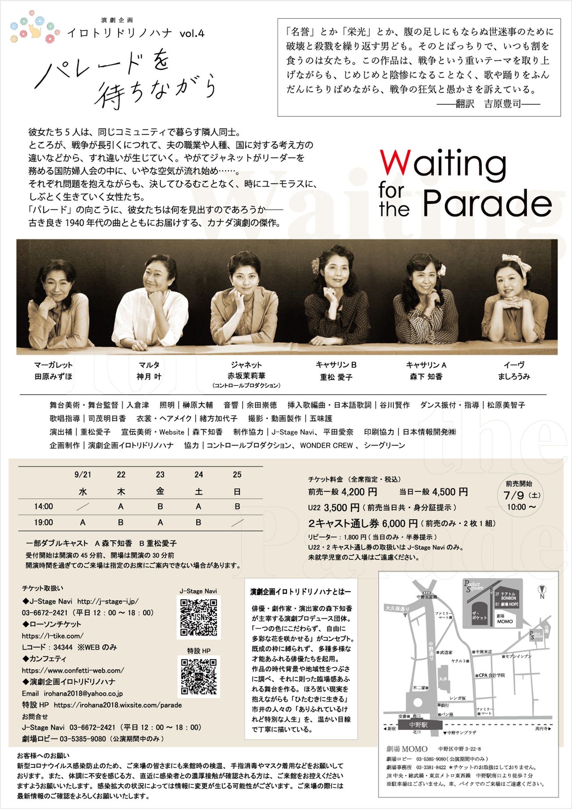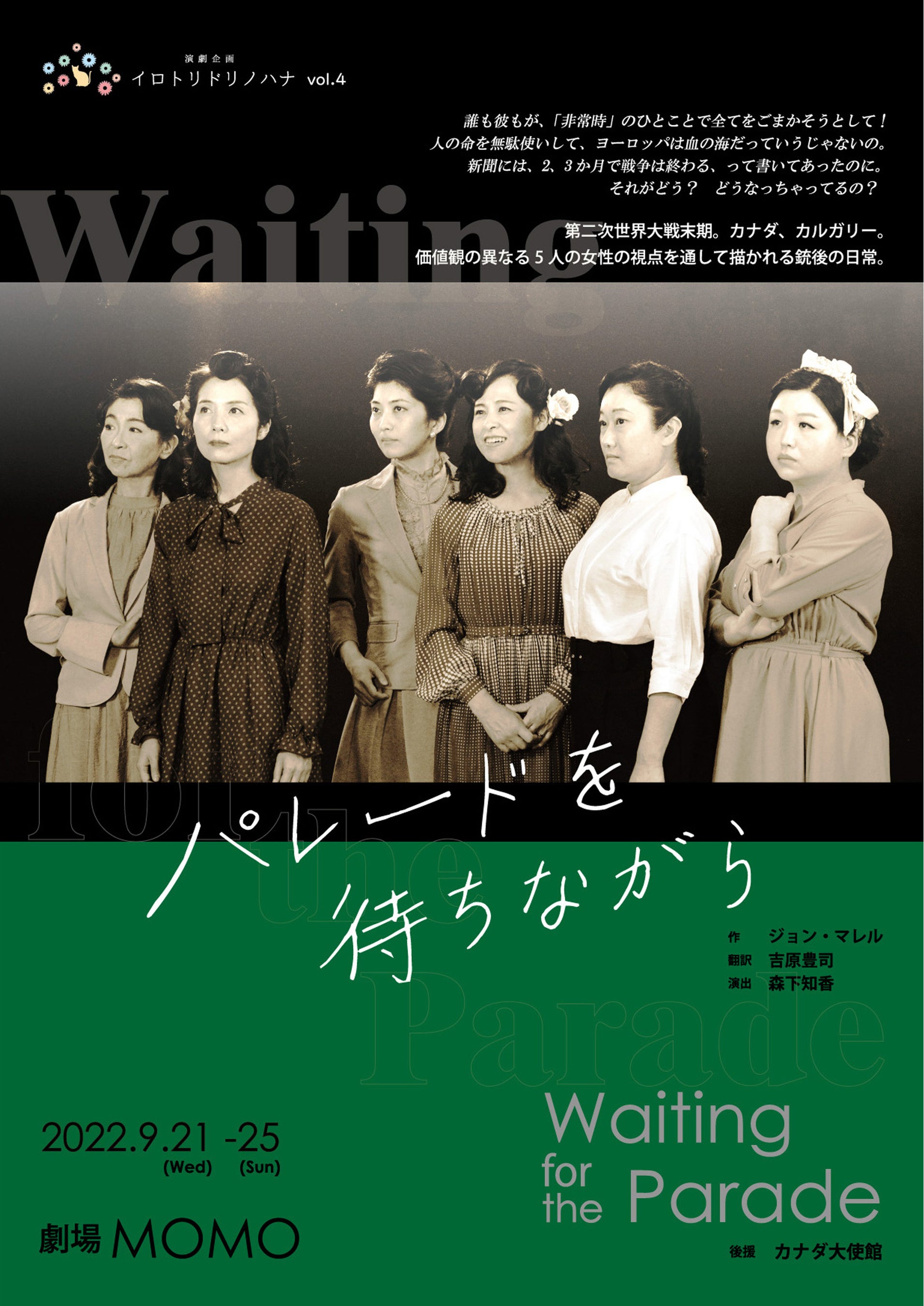 5人の女が語る戦争の狂気。1940年代の名曲とともにお届けするカナダ演劇の傑作! 演劇企画イロトリドリノハナ『パレードを待ちながら』上演決定 カンフェティにてチケット発売中