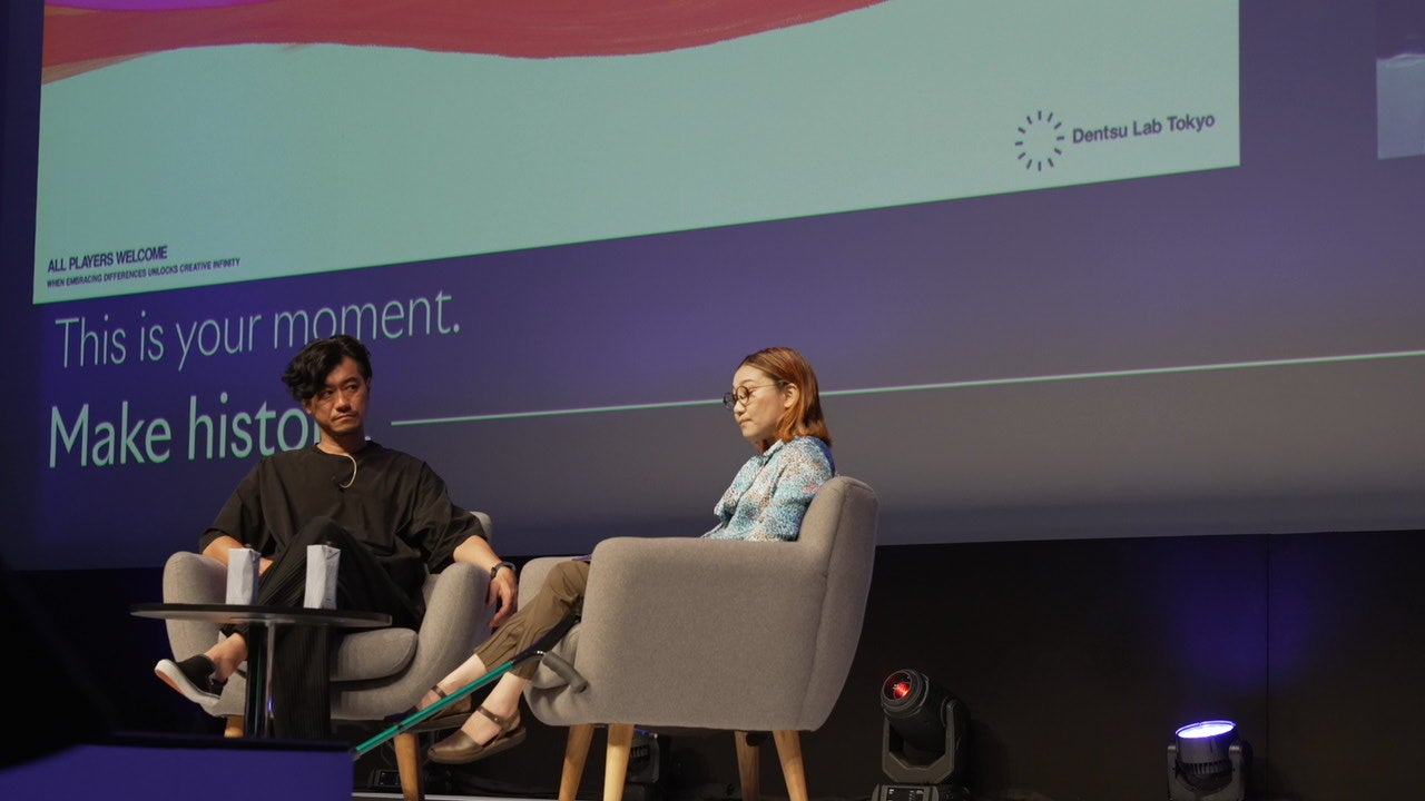 Dentsu Lab Tokyoは、2017年に開始した「PARA-SPORTS LAB」をはじめ、さまざまなバックグラウンドを持つ方々と共に社会課題の解決や、あたらしい表現方法について模索する中で、障がい者のクリエイティビティにおける可能性と社会の課題を感じ、すべての人が自由な表現ができる環境作りを目的とした「ALL PLAYERS WELCOME」の始動を宣言。セミナーでは、SLOW LABEL代表の栗栖良依さんと共にすべての人がプレイヤーになる社会が持つ可能性を熱く語りました。また、その第一弾として、武藤さんとPONEさんとともに3ヶ月間の制作を経て、ライブパフォーマンスを実施しました。