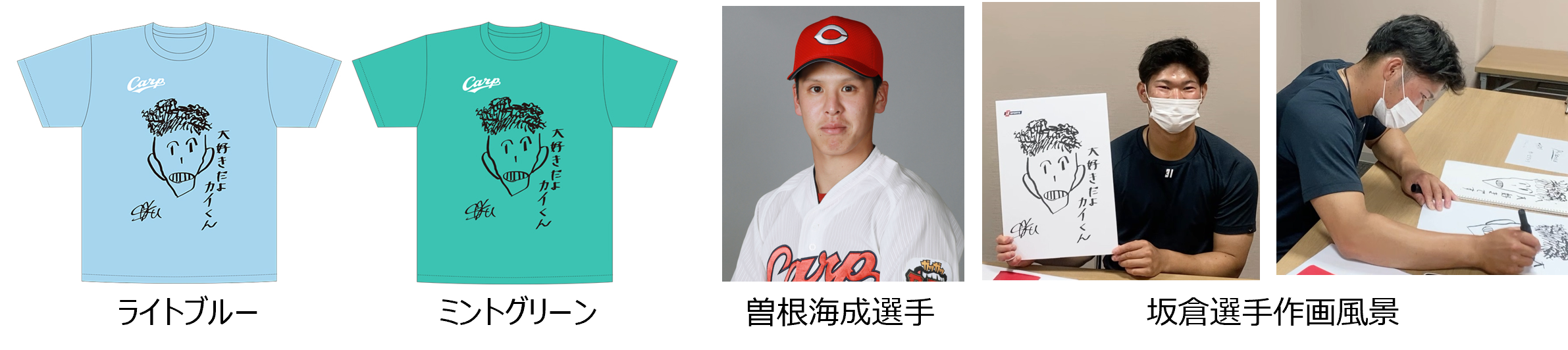 坂倉選手が愛してやまない先輩、曽根海成選手のイラストを描いていただきました。坂倉選手の愛溢れるコメントと本企画限定の坂倉画伯サインがデザインされています。