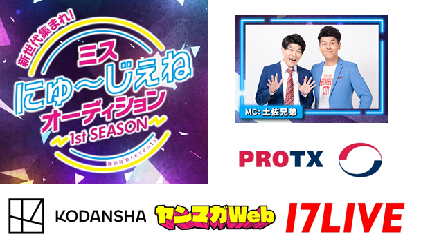テレビ東京グループで放送・配信番組の企画制作を行う、株式会社テレビ東京制作(本社:東京都港区、代表取締役社長:井上康、以下PROTX)は2020年9月より「新エンタメ・ソリューションプロジェクト」を開始。       今回は、講談社・17LIVEとタッグを組み、テレビという枠を飛び越え、王道コンテスト「ミスマガジン」とは異なる、枠にとらわれない魅力的な新スターを、近年大流行中のライブ配信アプリの“ライバー(ライブ配信者)”さんの中から発掘する、新しいオーディション企画を生み出したい!という講談社さんの意向を受け、                        老舗出版社×ライブ配信アプリ×テレビ番組同等の番組クオリティという掛け合わせで                    新旧のメディアが手を取り合い、令和という新たな時代の新スター“ミスにゅ~じぇね”を発掘します!