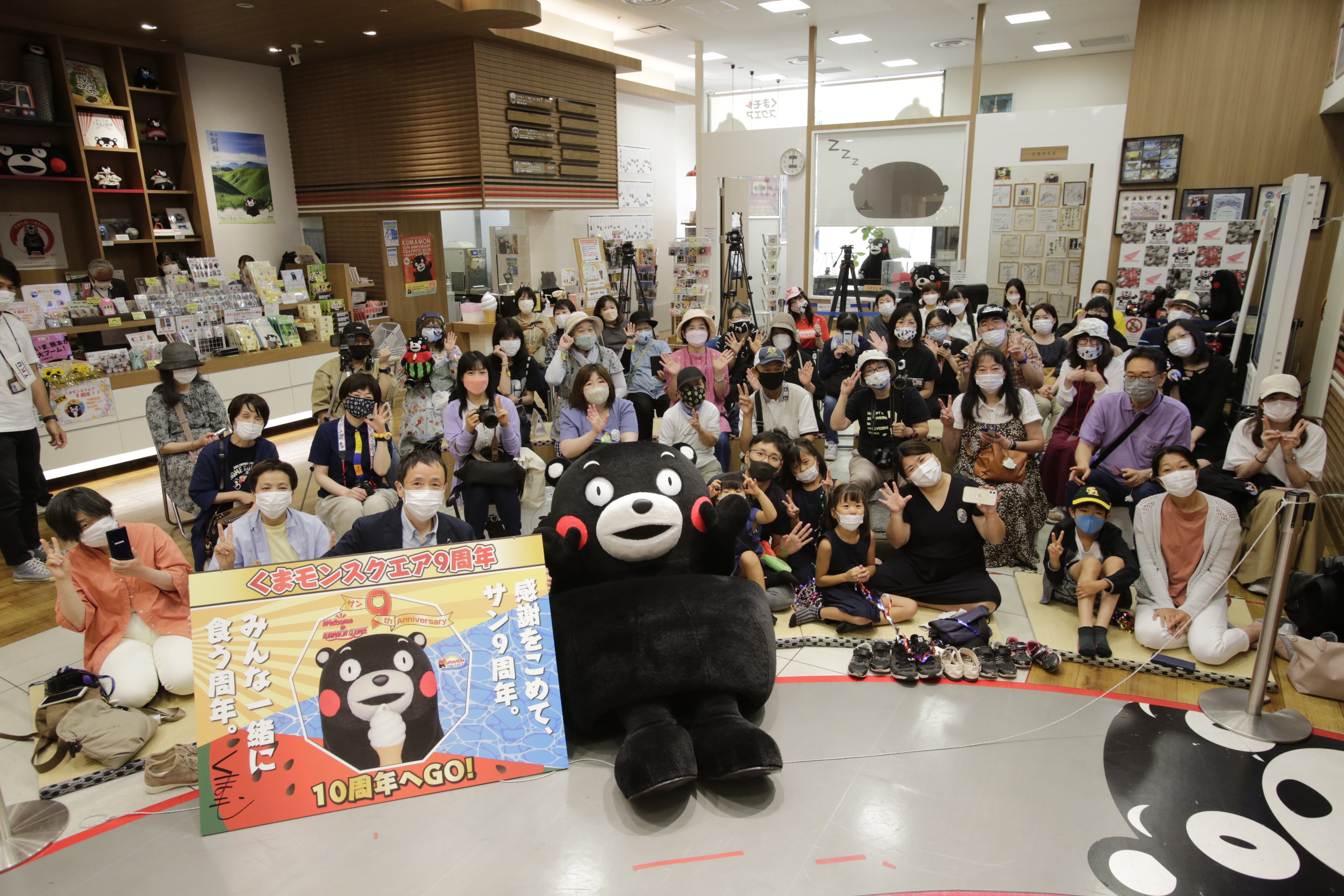 ここ数年、コロナ禍にあってくまモンスクエア自体の入館制限等により集客は減少していたが、少しずつ復調。オープンから 9 年目となる 2022 年 7 月 22 日(金)、この日から 24 日(日)までの 3 日間開催される「くまモンスクエア 9 周年企画 ~感謝を込めてサン 9 周年。みんな一緒に食う周年。10 周年へ GO!」の記念セレモニーが開催された。