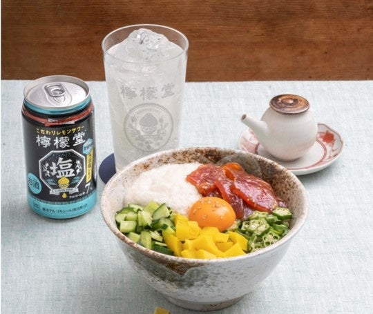 夏バテを吹き飛ばすネバネバ食材と様々な触感が楽しめるのがポイント。食べやすいように一口サイズにカットして、ごはんの上に乗せるだけで完成。「檸檬堂 うま塩レモン」の瀬戸内海の塩のまろやかさがネバネバ食材とまぐろを引き立てます。
