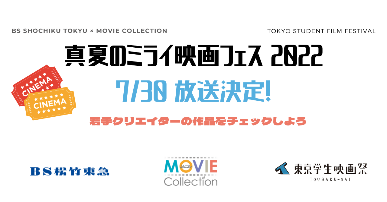 BS松竹東急とMOVIE Collection[ムビコレ]は、テレビ局とWebメディア、YouTubeチャンネルとがメディアミックスした企画「真夏のミライ映画フェス 2022」(期間:2022年6月24日(金)〜2022年7月30日(土))を開催中です。