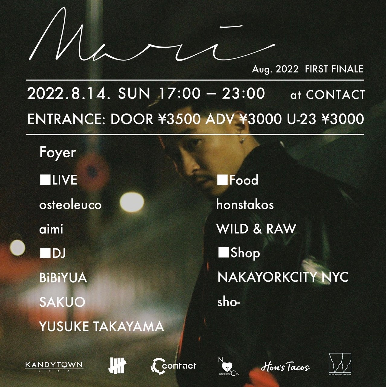 2022年初の開催はContactの閉店に伴い、”FIRST FINALE”と銘打ち、スペシャルゲストライブにKANDYTOWNからKEIJU、スペシャルゲストDJにDJ Koco a.k.a. Shimokita、オカモトレイジ (OKAMOTO’S)、FUNKTION Crew、YonYonを招聘。