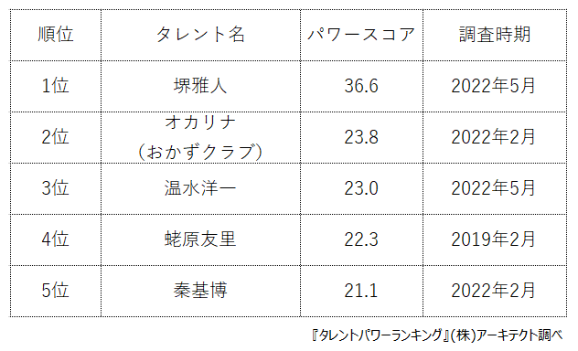 本ランキングは、2022年5月度に実施したタレント調査データ(一部過去実施データ)を利用し、タイトルに応じてランキング形式でまとめたものです。
