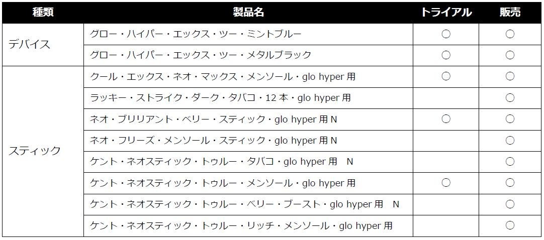 ※トライアル・販売製品は下部ページの表をご参照ください。