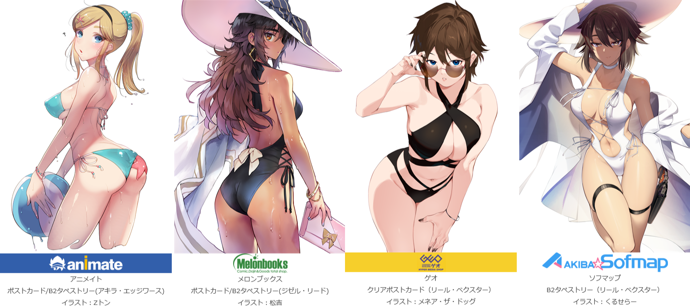 各小売店でNintendo Switch™版『シロナガス島への帰還』のために描き下ろされたイラストを使用した特典をご用意しています。店舗ごとの特典イラストについては下記をご確認ください。