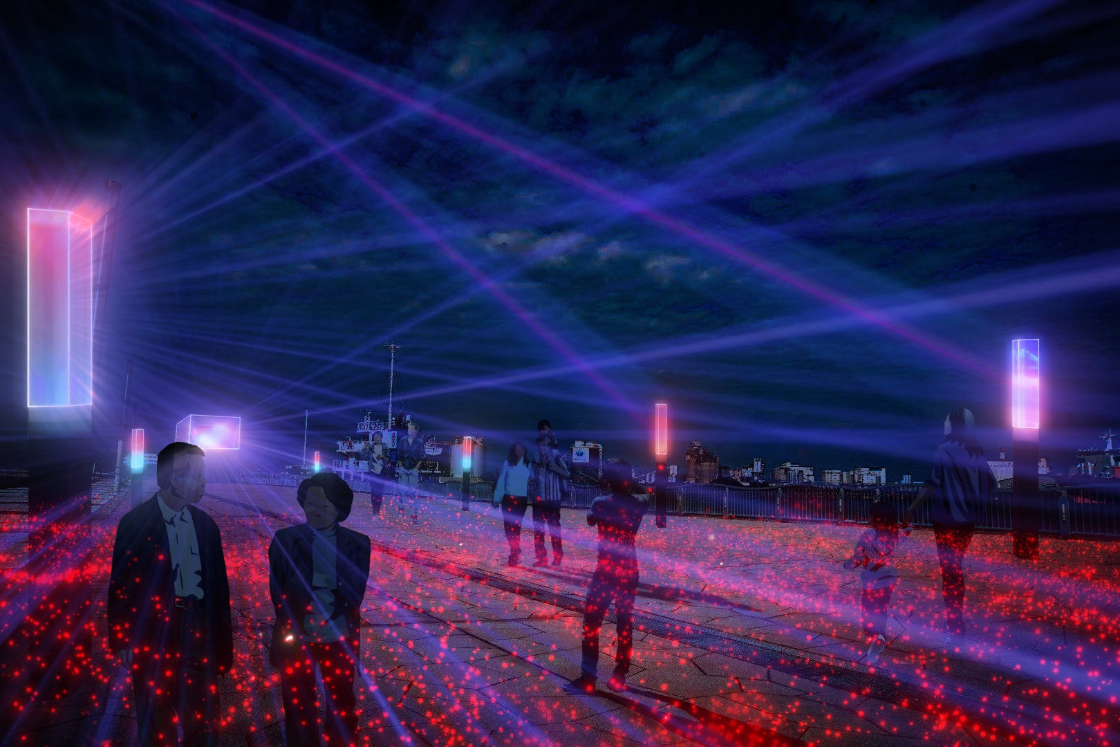 夜間は、未来をイメージした光演出のモニュメントやインスタレーション、北海道を拠点とするアーティストが多数出演するライブ/DJステージのほか、アイランドバーも設置され、ムード溢れる空間となります。