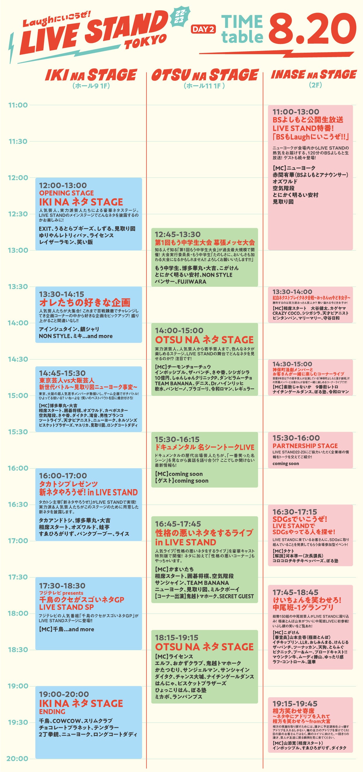 • 「LIVE STAND 22-23 TOKYO」 タイムテーブル 8月20日(2日目)