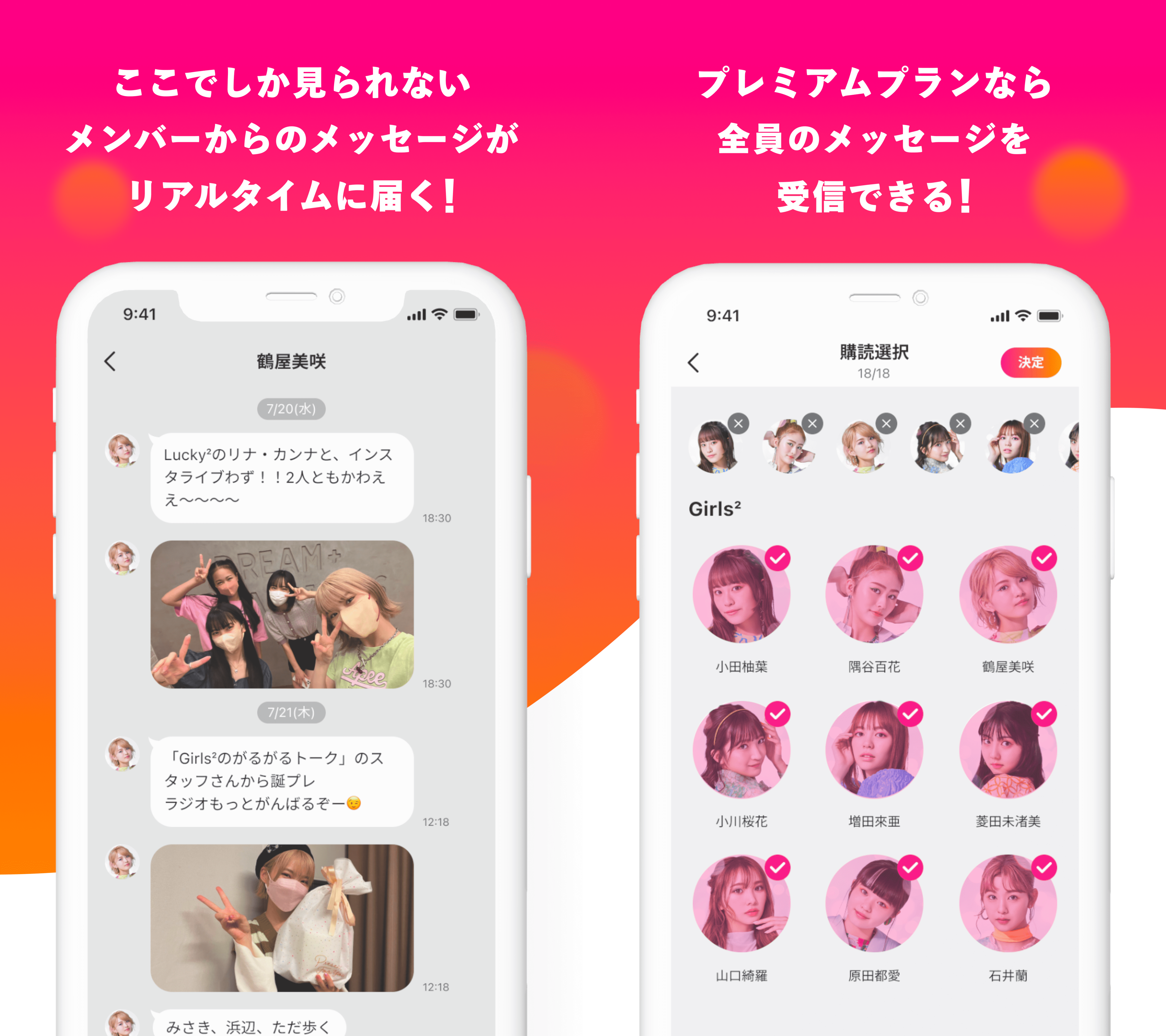 また、プレミアムプランを選択するとGirls²とLucky²全メンバーのメッセージを受信できるだけでなく、受信した画像と動画を端末に保存することができます。