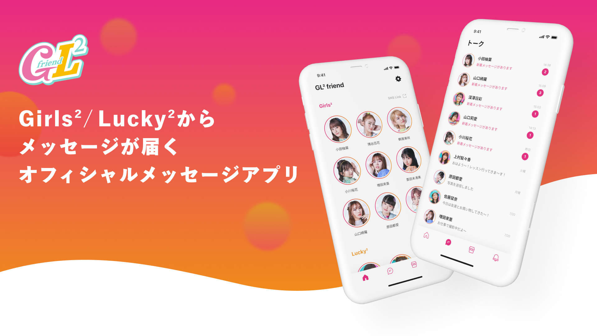 Girls²とLucky²のメンバーからメッセージが届くオフィシャルメッセージアプリ「GL² friend」が開始!