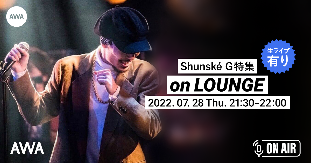 今回のイベントは、Shunské Gの参加楽曲をオンエアし、リアルタイムでShunské Gが音声とチャットで参加し、スタジオライブを披露します。スタジオライブでは未発表の曲を披露。AWAアプリを事前にダウンロードしていれば、アーティストとの交流など、よりお楽しみいただけます。ぜひ、Shunské Gのラジオ配信ラウンジをお楽しみください。