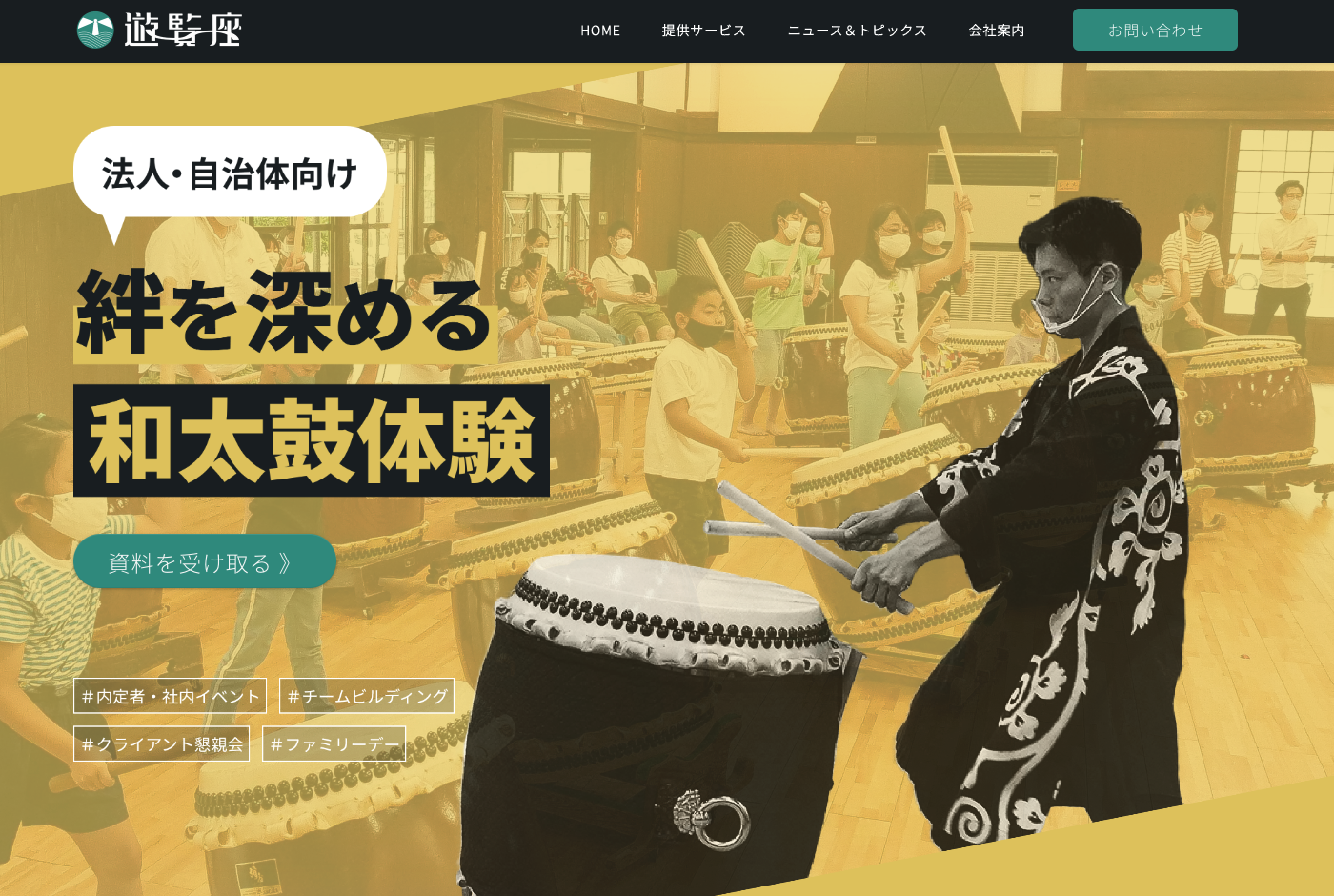 株式会社遊覧座(ゆうらんざ)(本社:東京都足立区、代表取締役:斗澤 将大、以下「遊覧座」)は、企業向け「和太鼓体験ワークショップ」のサービスサイトをリニューアルいたしました。