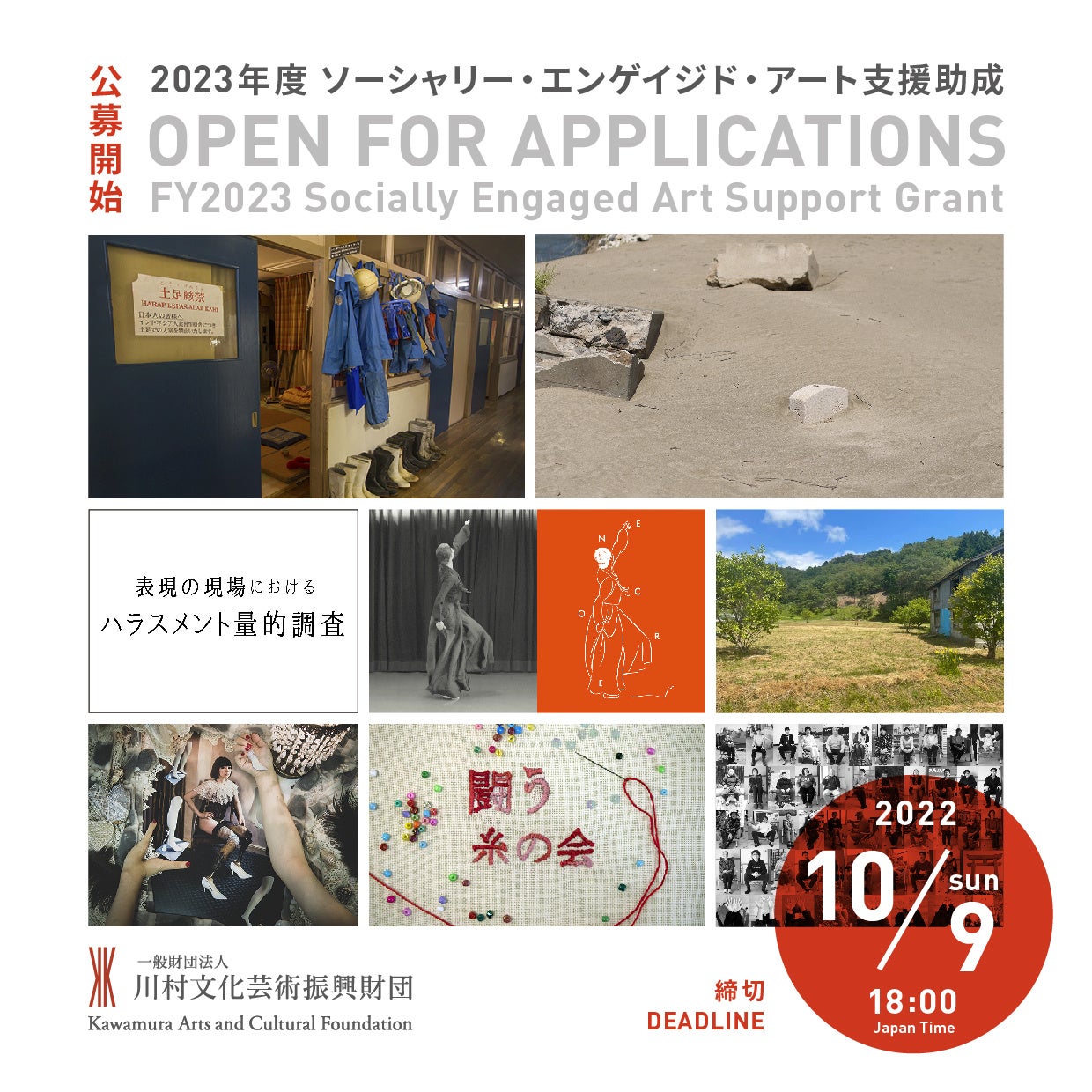 この度、一般財団法人川村文化芸術振興財団(理事長 川村喜久)は、2023年度「ソーシャリー・エンゲイジド・アート支援助成」の助成団体の応募受付を開始いたします。