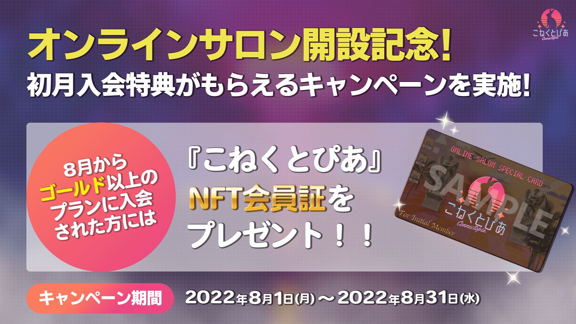 - 『こねくとぴあ』NFTオンラインサロン会員証プレゼントキャンペーン概要