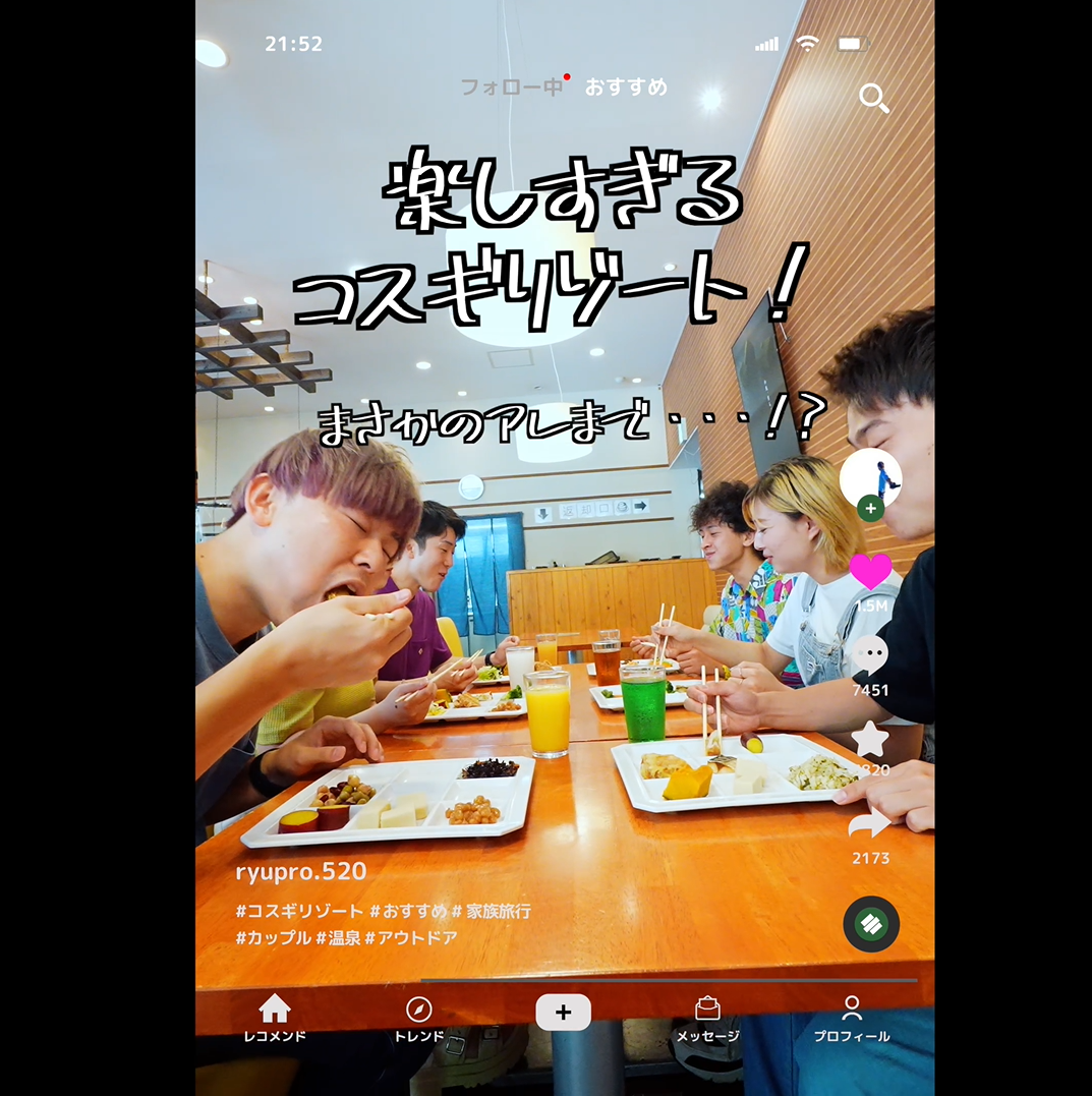 阿蘇ハイランド開発株式会社(本所在地:熊本県阿蘇市乙姫 / 代表取締役:小杉 堅太/ 以下「コスギリゾート」と表記.)は 2022年7月19日より、新テレビCMを放映開始致しました(熊本民放4局). Tiktok・Instagramを中心に活躍中の熊本在住のインフルエンサー:竜(ryupro.520)とのコラボにより、テレビCMでありながらスマホ画面を見ているような感覚を味わえる構成になっています.