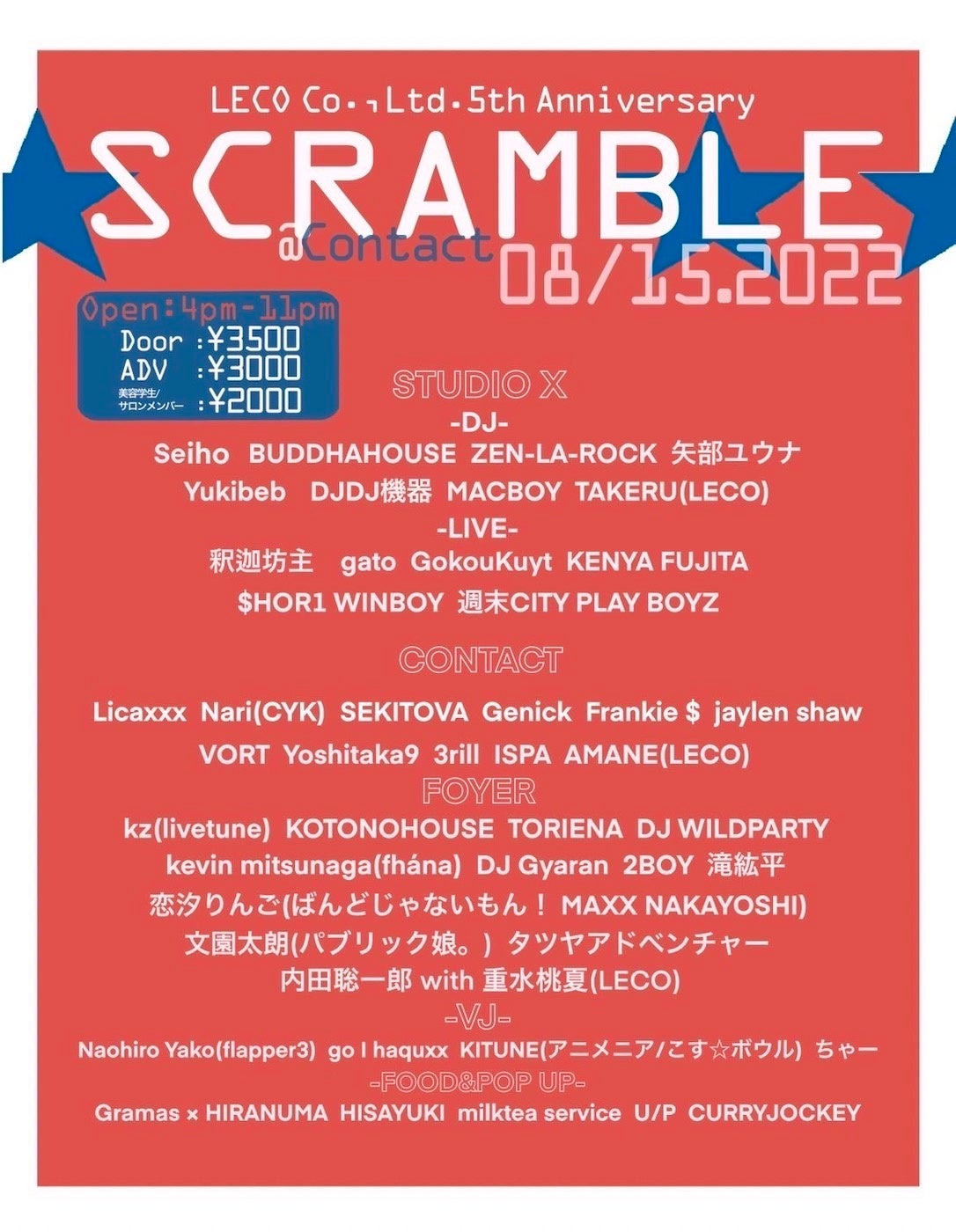 8月15日(月)LECO Co., Ltd. 5th Anniversary SCRAMBLE