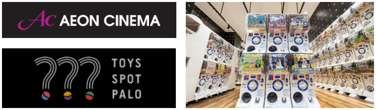地域に根差したエンターテイメントのプラットフォーム「イオンシネマ」内に「TOYS SPOT PALO」を出店することで、映画を楽しむお客さまに向け映画タイトル関連アイテムを中心に多彩なカプセルトイを展開し、「ガチャッと回す楽しみ」に出会える+αのエンターテイメントを提供いたします。