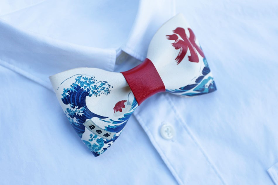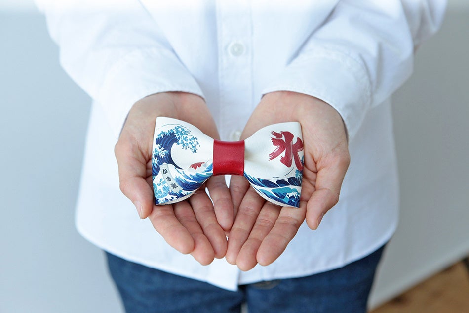 グルメレポーターとして活躍中の彦摩呂さんがプロデュースした「グルメな革の蝶ネクタイ」。