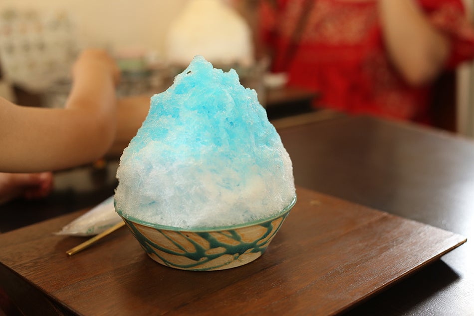 夏のひんやりスイーツかき氷が蝶ネクタイとなって首元を爽やかに彩ります。思わず「かき氷の蝶ネクタイや〜」と叫びたくなりますね。