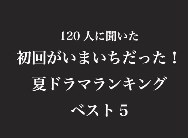 夏ドラマの初回放送が終わりましたが、みなさんはどんな感想を持ちましたか?TVマガでは、120人のドラマ視聴者に「初回がいまいちだった夏ドラマ」のついてアンケートをとりました。1位〜5位までのランキングと選んだ理由を紹介いたします。