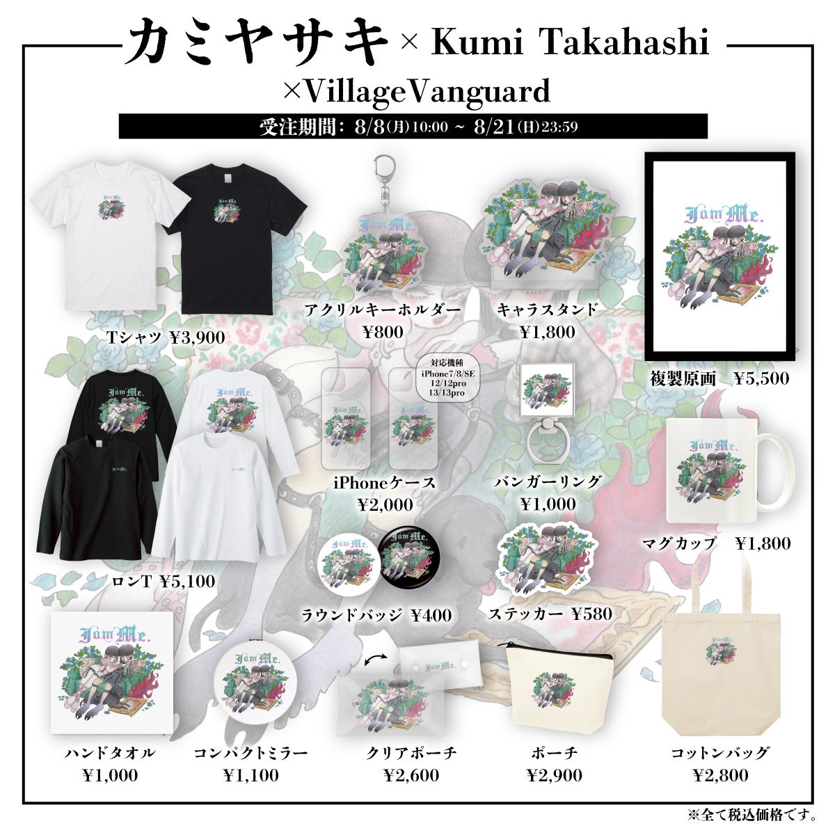 2022年8月8日(月)より【カミヤサキ】さんとイラストレーター【kumi Takahashi】さんによる、ヴィレッジヴァンガード限定コラボグッズがオンラインストアにて完全受注販売決定!
