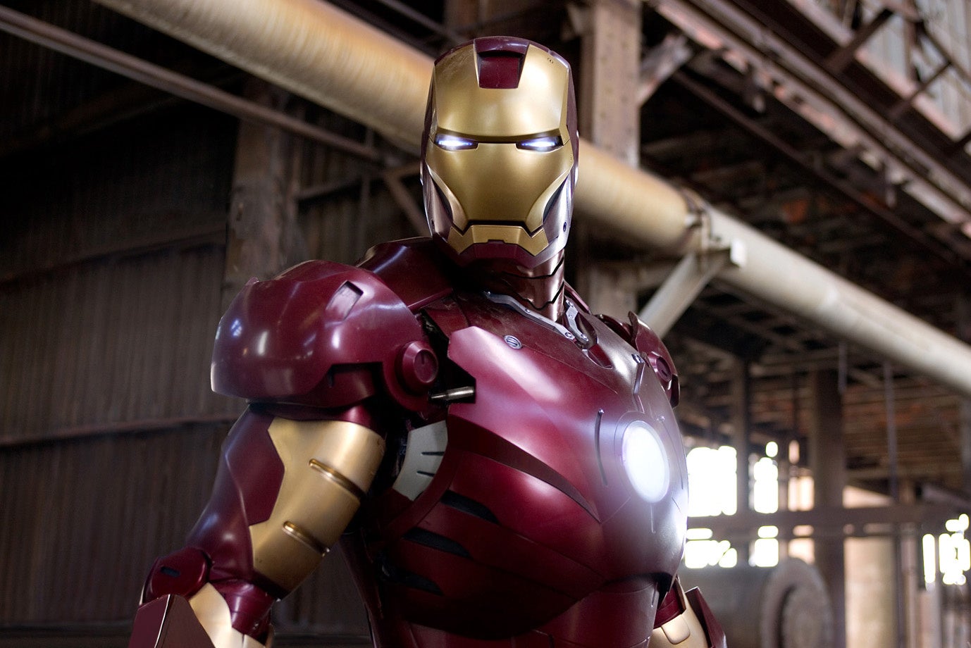 巨大軍事企業スターク・インダストリーズの社長トニー・スタークは、発明したミサイルの商談のためアフガニスタンへ飛ぶ。しかし現地でテロ組織に囚われてしまい、武器の開発を要求される。一味の目を盗んで飛行可能なパワードスーツを作り上げ脱出したトニーは、自社兵器がテロ組織に利用されている実態を知って武器製造の中止を決意。パワードスーツを改良した彼は紛争地帯へ飛び、自社の兵器を使うテロリストたちを排除する。