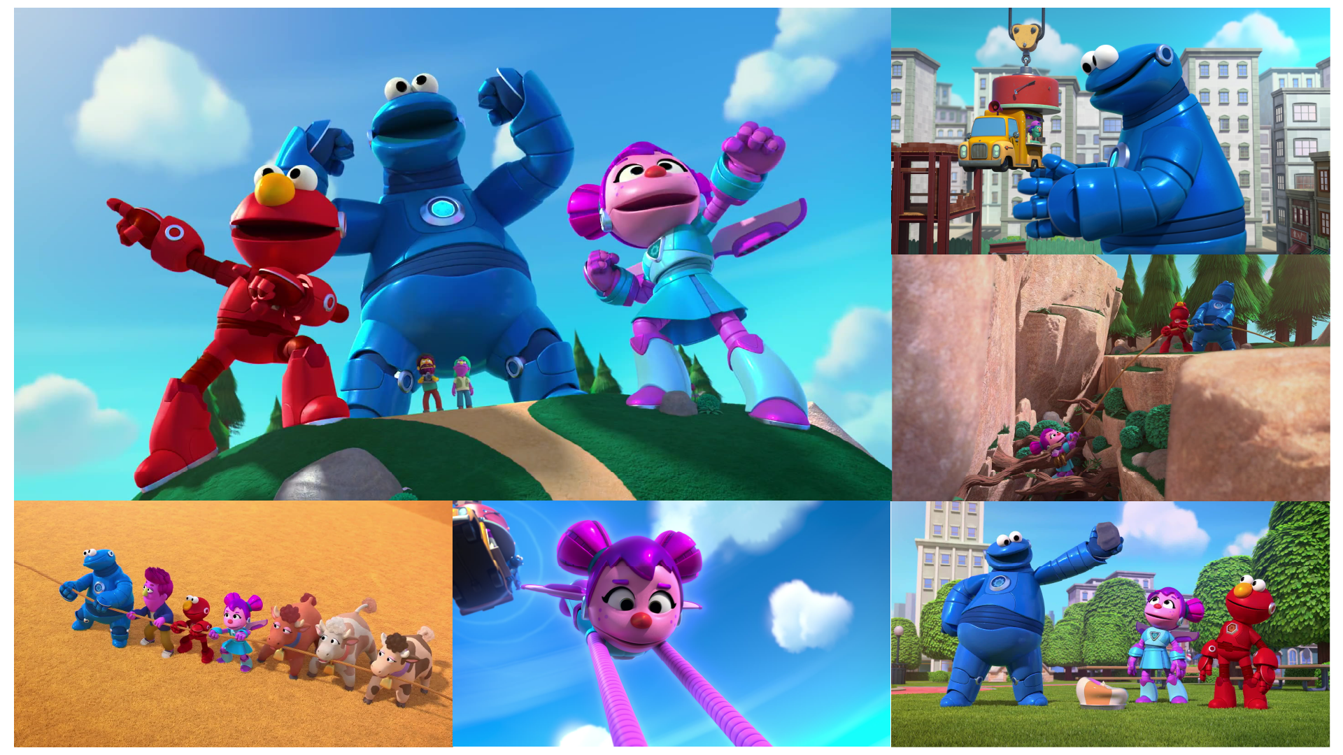エルモ、クッキーモンスター、アビーが訓練中のロボット・ヒーローとして登場。STEAMの力を使って、街中で起こる少し変わった問題を解決していく。セサミストリートの仲間たちと一緒に楽しみながら、論理的・構造的思考力を養うことのできるシリーズ。本作では、アイスクリームの像に乗る巨大バナナをくさびで割ったり、木にかける滑車のためにケーブルの測り方を学んだりと、あらゆる種類のおかしな問題を解決しながら、簡単な機械や、力や物の性質のようなSTEAMの概念を紹介する。カナダ・トロントを拠点にするGuru Studioが手がけた生き生きとしたアニメーションが、メカクッキーモンスターのハンマー・ハンドやメカアビーのグングンアームといった道具、巨大にもミニサイズにもなるメカたちの能力など、問題を解決のための想像力を膨らませてくれる。