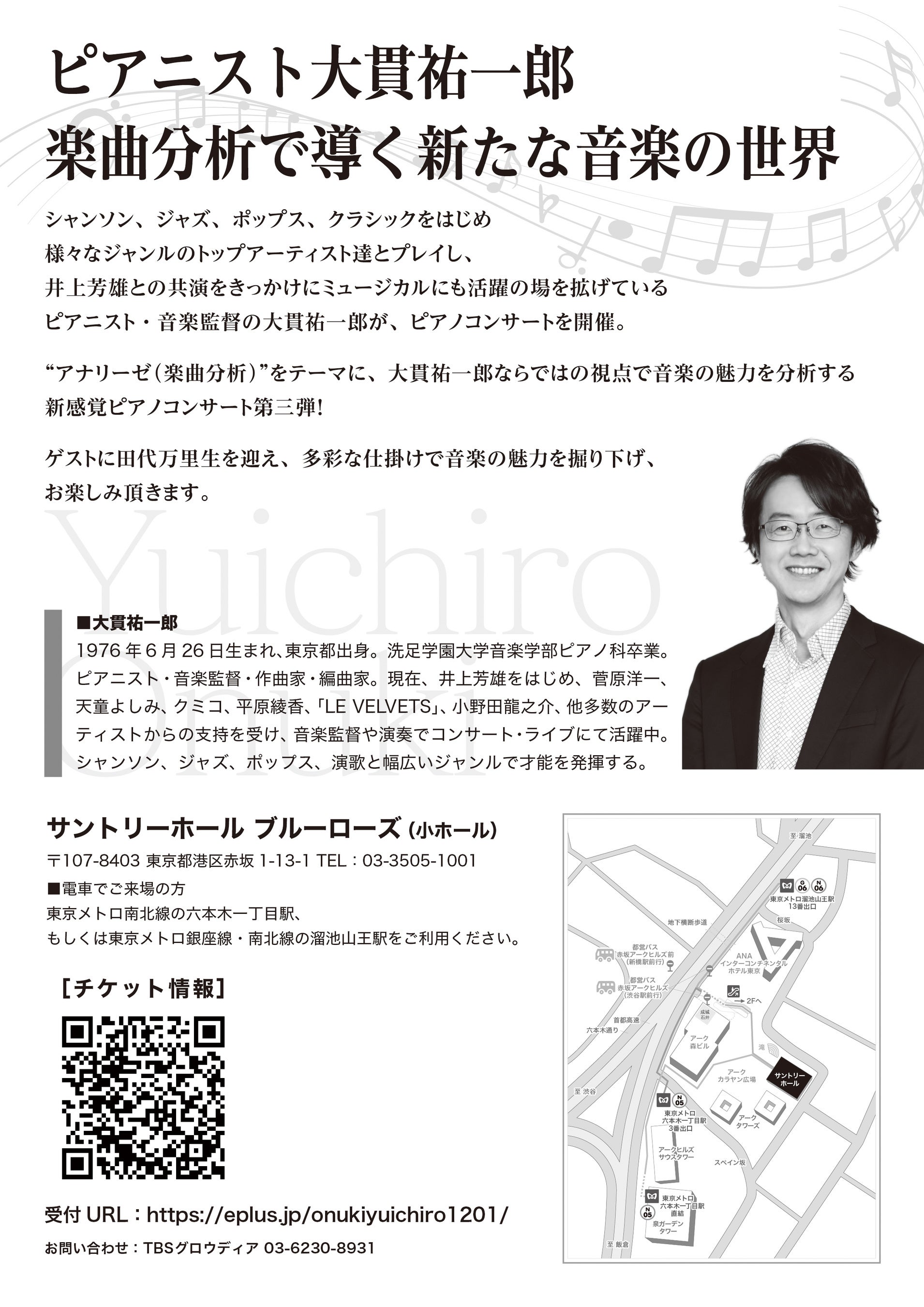 “アナリーゼ(楽曲分析)”をテーマに、大貫祐一郎ならではの視点で音楽の魅力を分析する新感覚ピアノコンサート第三弾!