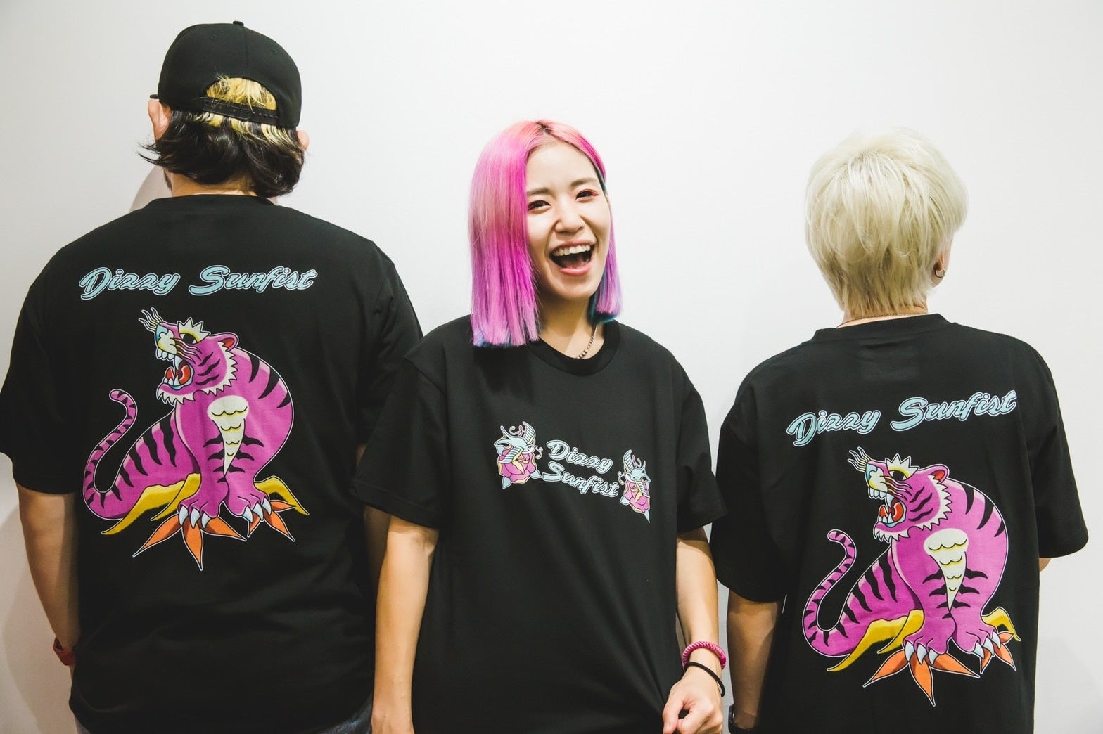 また、今回の映像作品の一つのフォーマットとして話題を呼んでいる『DIZZYLAND DX』DLコード付Tシャツ(受注生産)のメンバー着用の写真も同ページ内にて公開された。なお、DLコード付Tシャツの受注受付は、8/31まで。