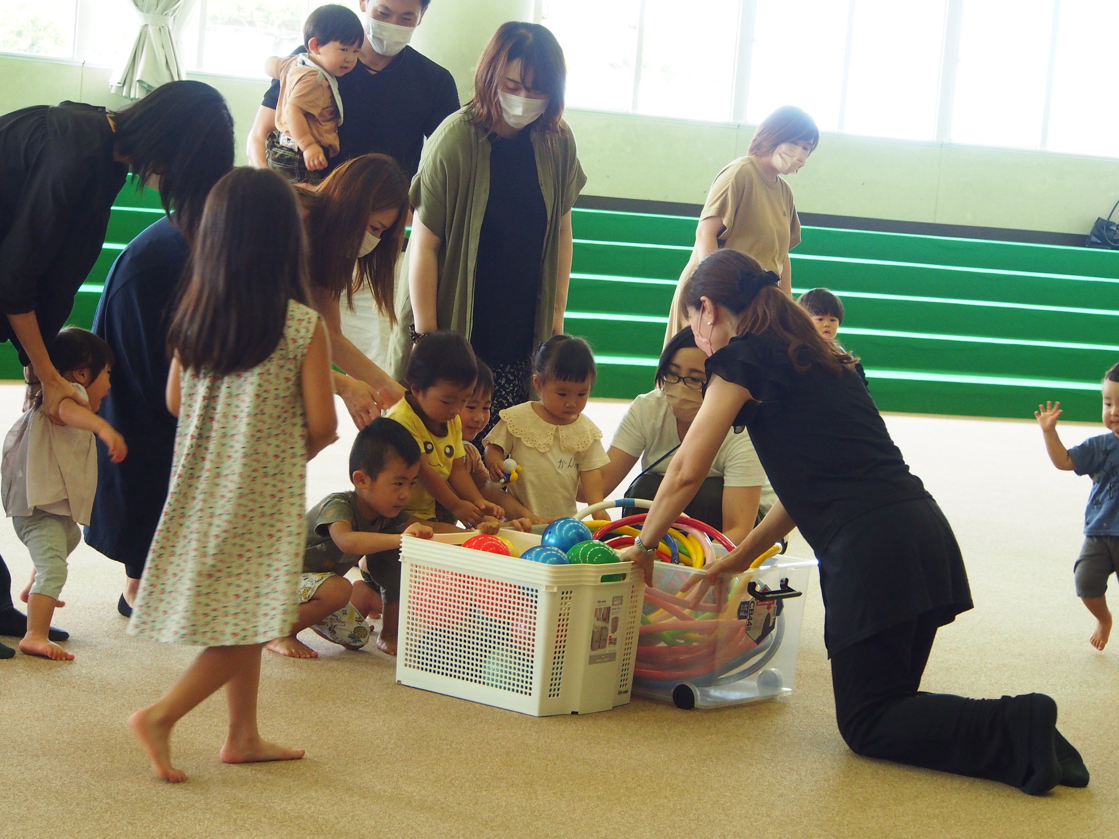 音楽を身体を動かして「ともに楽しむ」というリトミックの精神が、全学科の教育や活動に活かされています。 7月24日には米子市児童文化センターにて親子が一緒に楽しめる≪親子でリトミック≫イベントを実施しました。音楽がある中でたくさん身体を動かして親子で一緒に楽しみ、大好評でした。
