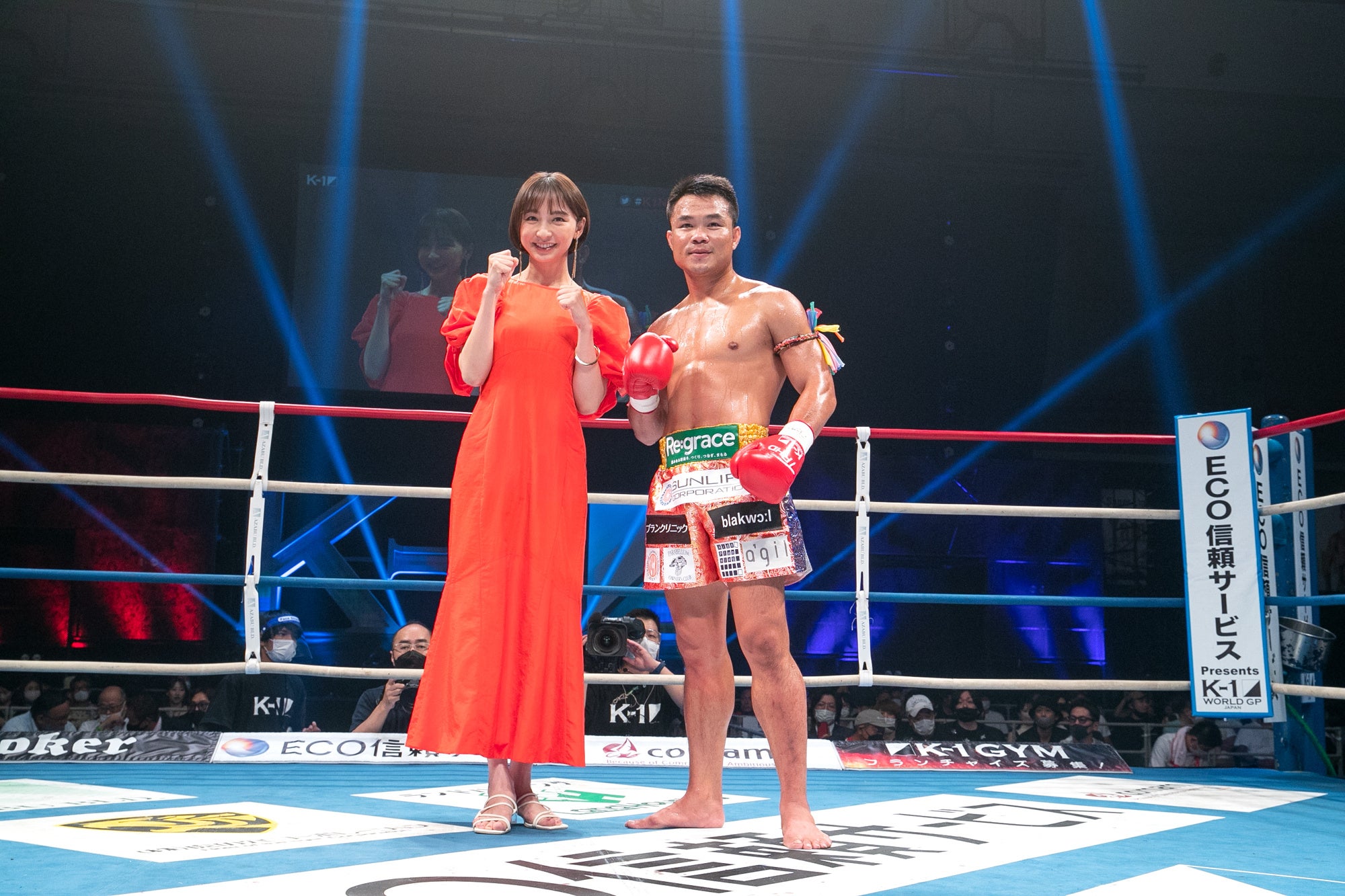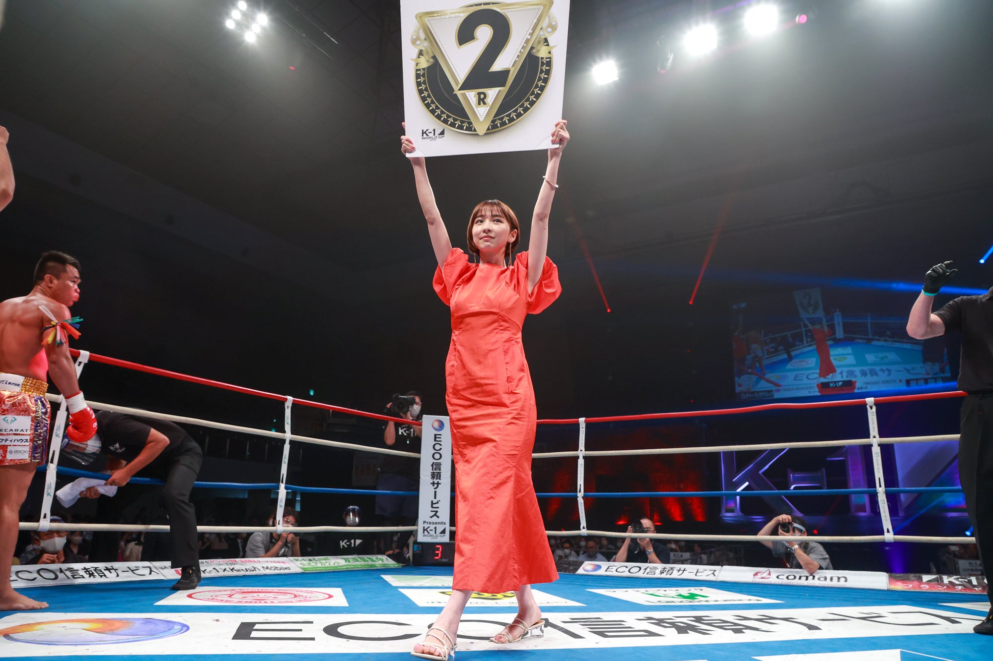 篠田麻里子さんには、第11試合 ゴンナパー・ウィラサクレックvs岩﨑悠斗の一戦にて、K-1スペシャルラウンドガールとして真っ赤な衣装で登場し、大会を盛り上げていただきました。