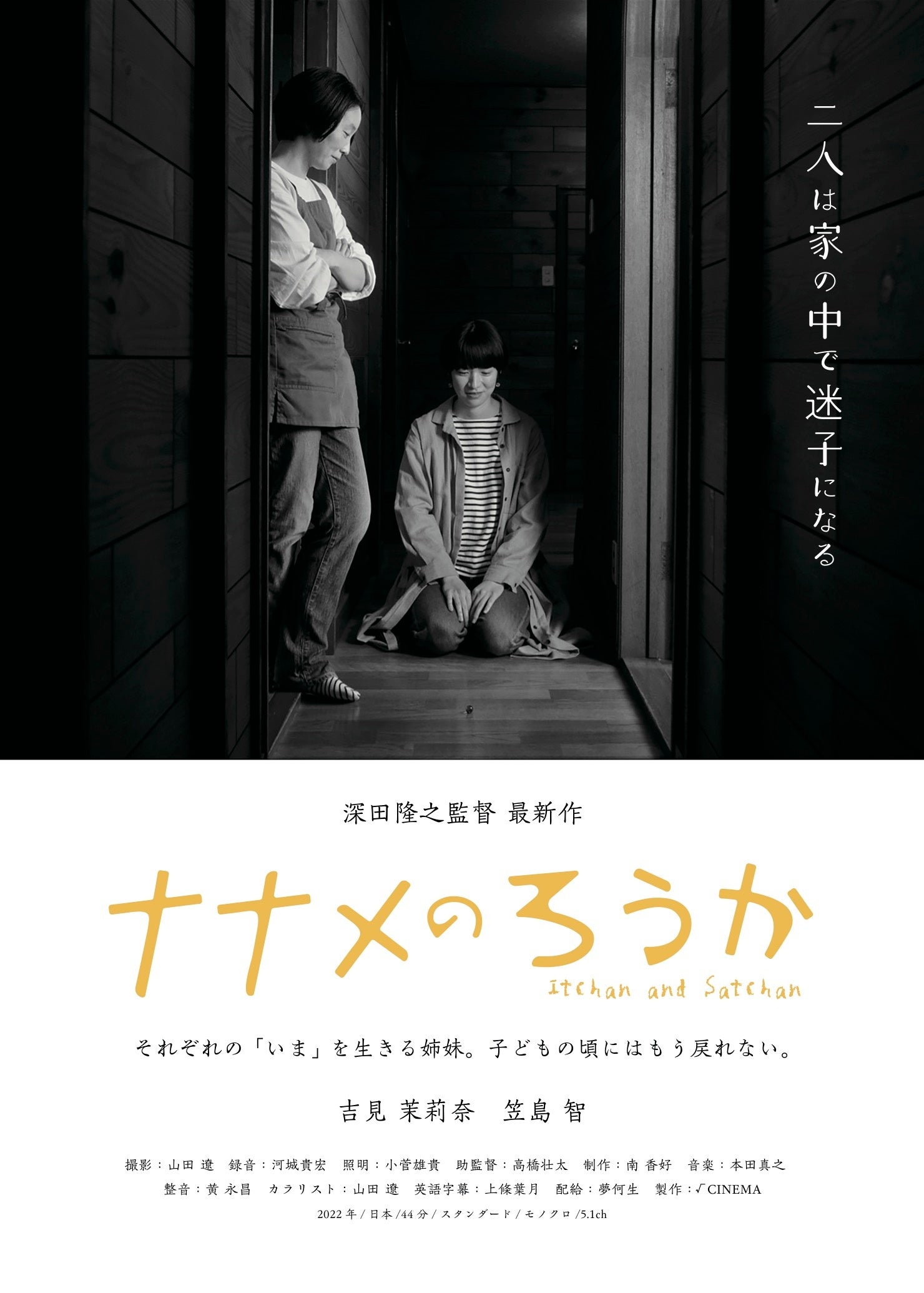 『ナナメのろうか』は祖母の空き家をめぐる姉妹2人の物語です。彼女たちが取り組む「片付け」という行為は様々な個人的記憶を呼び起こし、現実と交差します。2人がかつて一緒に遊んだ祖母の家。昔に戻ったように遊ぶ2人が直面するのは、それぞれの現実を生きる、変わってしまったお互いの姿です。そして、前半と後半で別の映画のようになる今回の構成は、映画表現だけが持つ話法の可能性に賭けたひとつのチャレンジでした。改装されるのを待つ家。生まれようとする命。何かが決定的に変わる直前の束の間の時間。是非劇場でご覧ください。