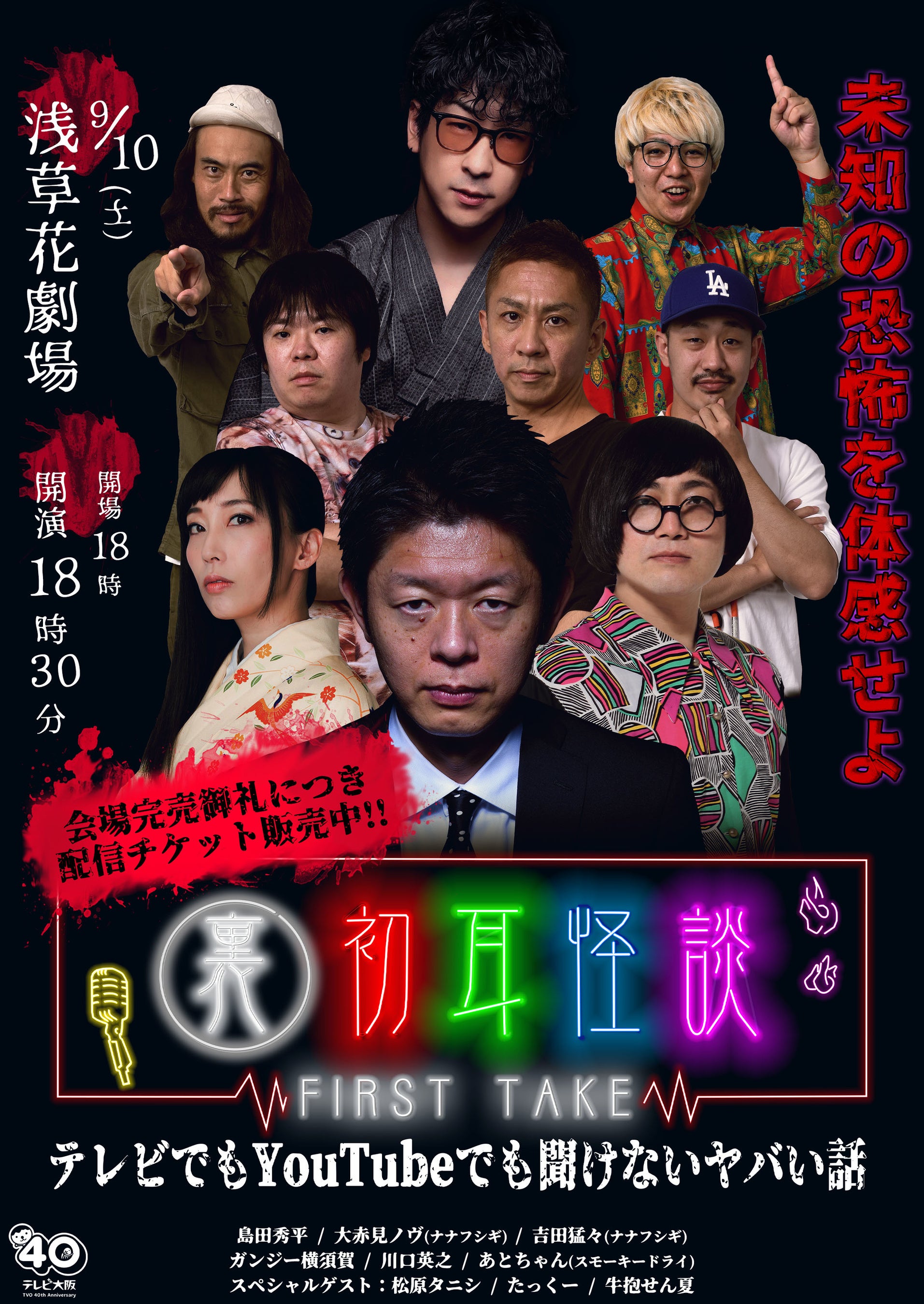 2021年10月からレギュラー放送が始まった「初耳怪談 FIRST TAKE」が、今回番組初となるイベントを開催!その名も「裏・初耳怪談FIRST TAKE ~テレビでもYouTubeでも聞けないヤバい話~」。