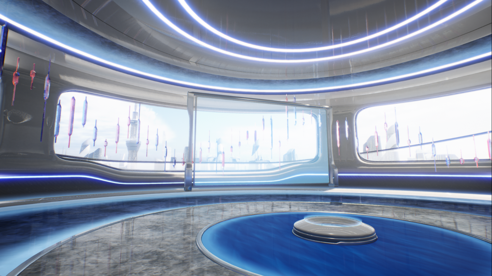 また、一般的なグリーンバックとは異なる、実写カメラワークとCG映像が同期した3Dバーチャル撮影が可能です。CGの中で撮影したような没入感が生まれます。