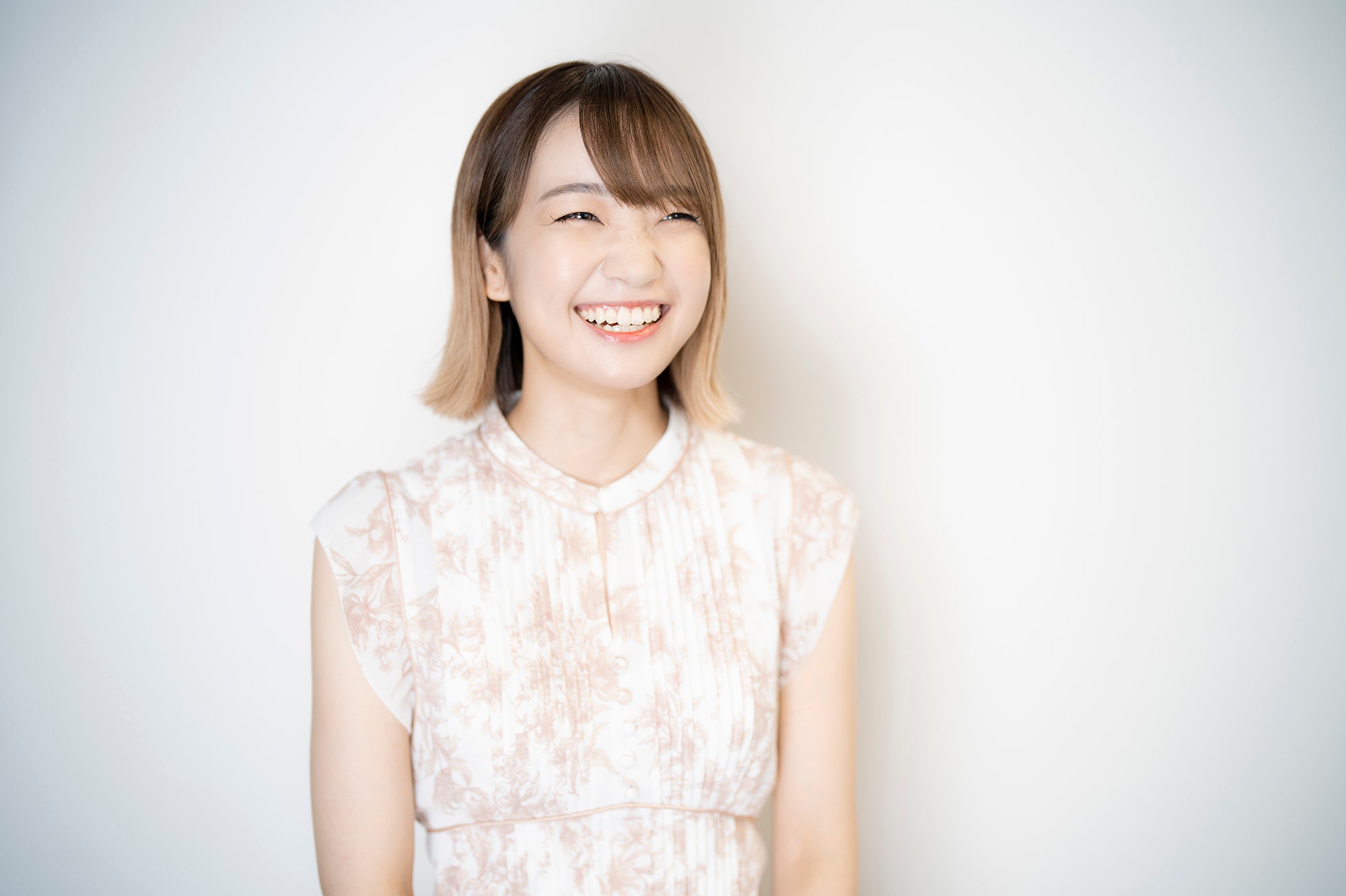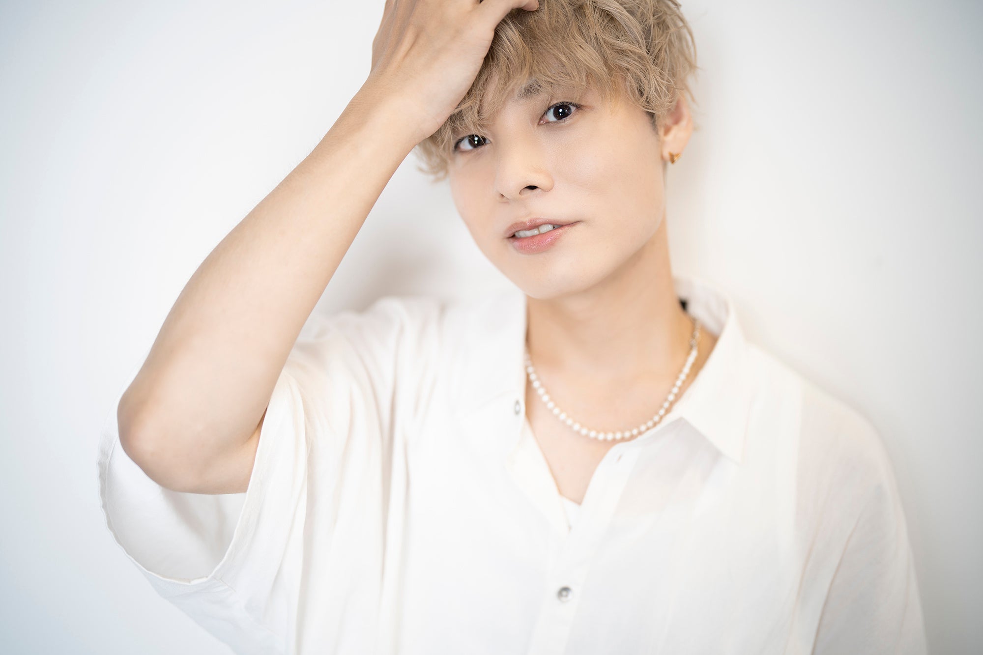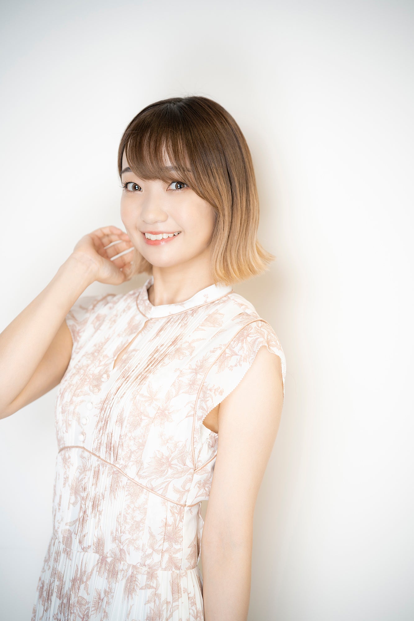 爽やかな白の衣装に着替えて、いよいよパンフレット用の写真撮影がスタート!背景は、タイトルに合わせて“ハニーレモン”色。