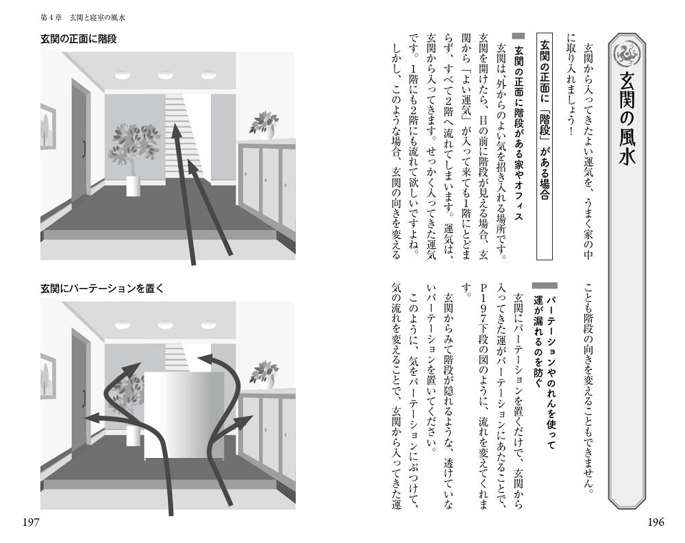 本書では、手軽に家庭やオフィス、店舗などの空間の「気」の流れを調整して、その空間の運気をもらって運を上げる方法をわかりやすく解説しています。