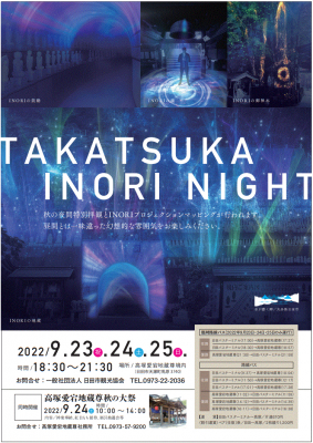 この度、一般社団法人日田市観光協会(会長:冨安裕子)は、高塚愛宕地蔵尊並びに高塚商店会等と協力し、「TAKATSUKA INORI NIGHT」を行います。