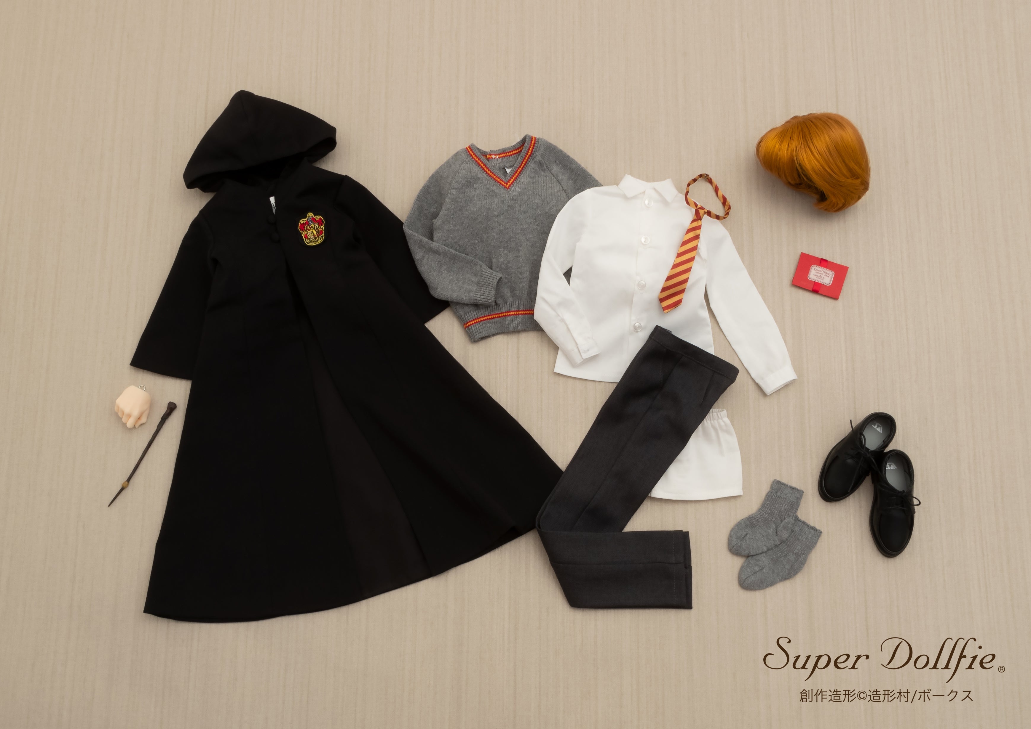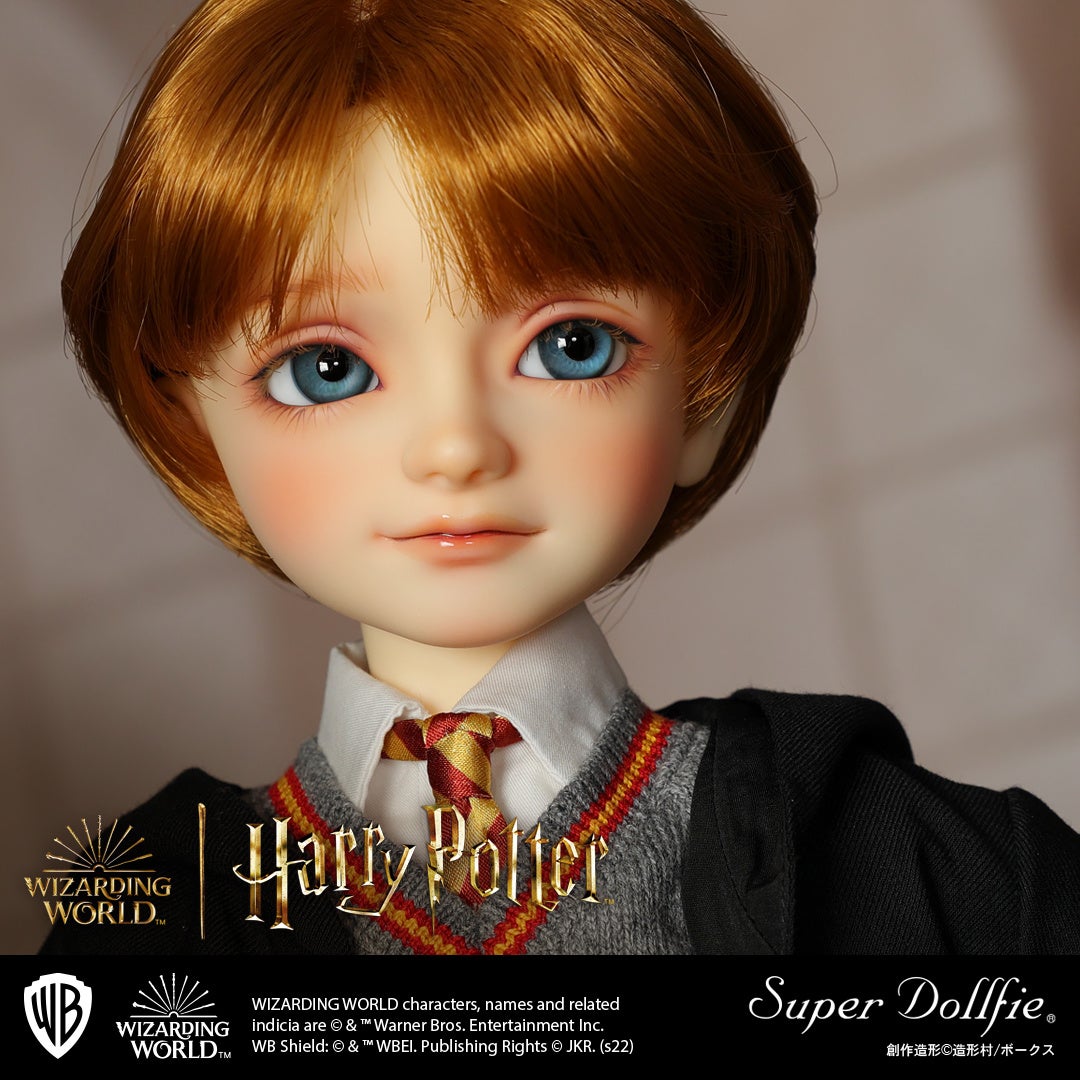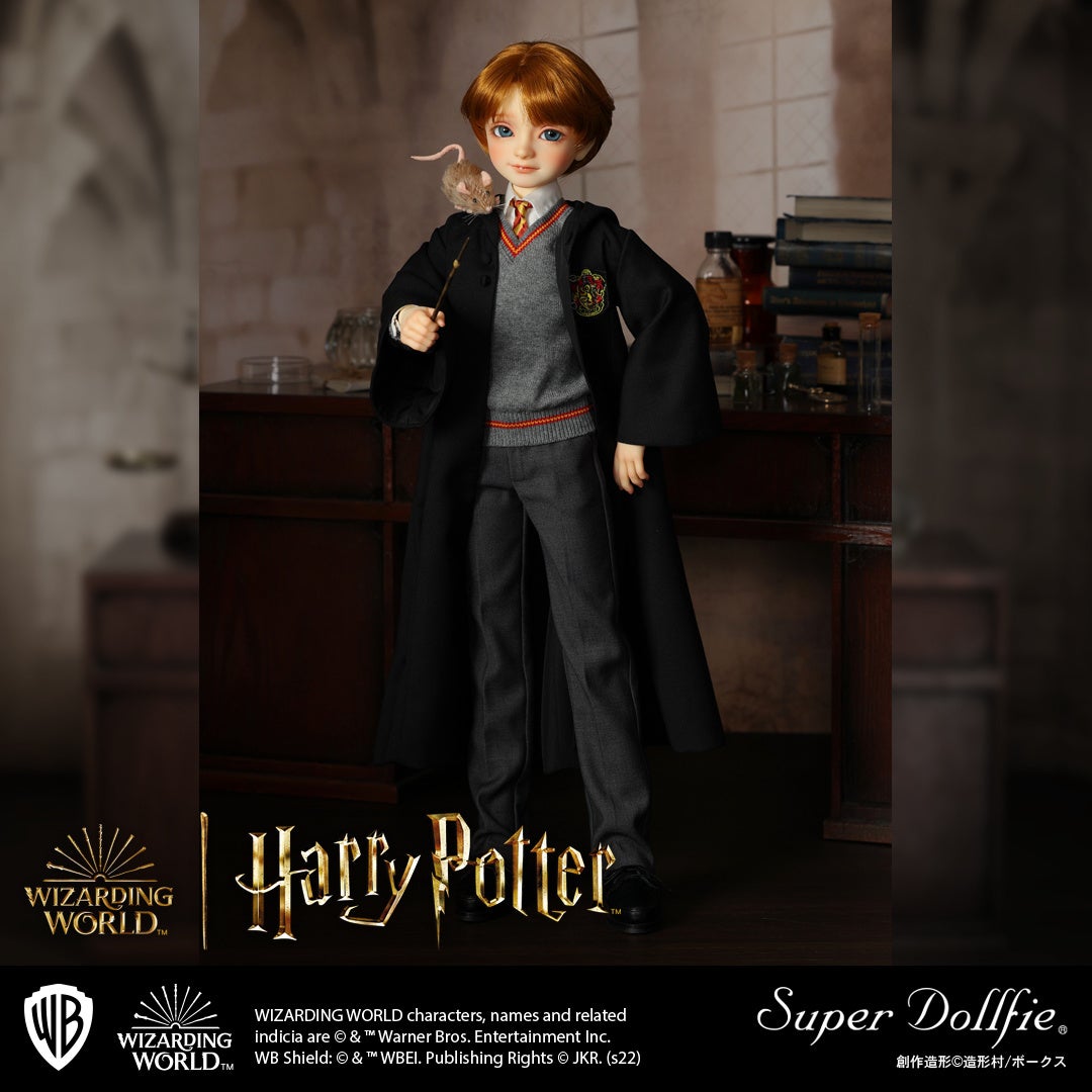 ハリー・ポッター マホウドコロでは、株式会社ボークス(本社:京都市下京区)が京都の工房で一体一体手作りで製作する球体関節人形『スーパードルフィー®』の、「ロン・ウィーズリー」と「ハーマイオニー・グレンジャー」を予約受付中です。『スーパードルフィー®』だけが持つ、透明感のある瑞々しい質感と繊細な瞳に加えて、着用しているローブやシャツ、ネクタイ、杖に豆本といった小物までをも丁寧に表現いたしました。
