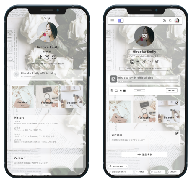 かつてのホームページでは担当者に依頼の必要があった更新依頼の手間がなくなり、最新の情報をすぐに更新することができるため、芸能関係者のユーザーから好評をいただき、アーティスト、俳優、モデルなど様々な芸能人のlit.linkページが増えています。