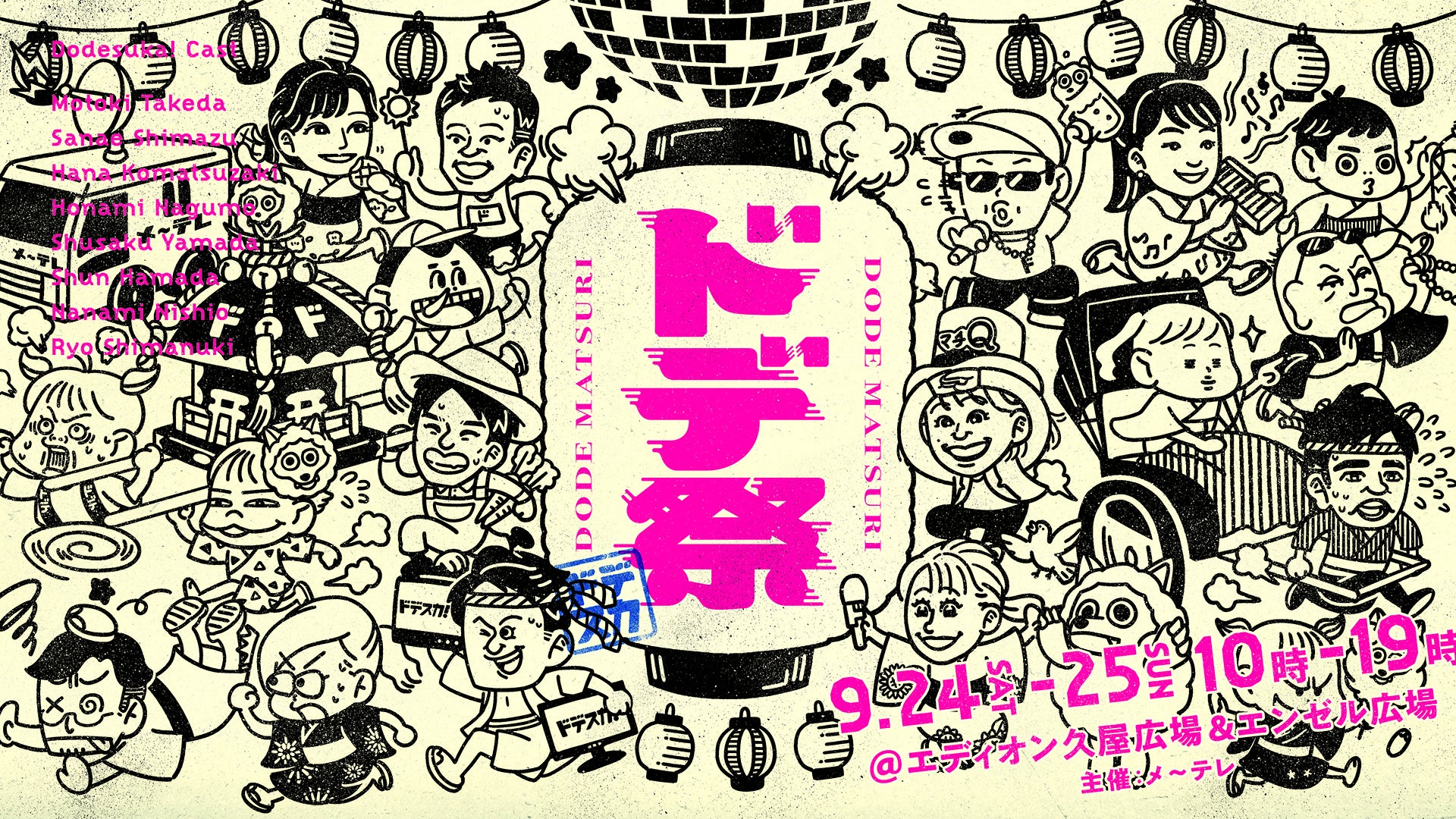 2002年4月1日にスタートした、メ~テレ(名古屋テレビ)朝の情報番組「ドデスカ!」(※月~金曜あさ6時から放送中)は今春、放送開始20周年を迎えました。これまで番組を応援してくださった東海3県の皆さんに、直接お会いして、「20年分の感謝の気持ちを伝えたい」! 9月24日(土)と25日(日)の2日間、「ドデ祭」を開催することになりました。会場は、名古屋・栄の久屋大通公園。提灯やお面、綿菓子にお神輿など、昔ながらの懐かしいお祭りを「ドデスカ!」流にアレンジ。そこに、音楽ライブやマルシェを掛け合わせた〝ちょっとだけ新しい〟お祭りです。番組の名物コーナーと連動した「オリジナルブース」や、東海地方の名店とコラボした「会場限定グルメ」など、誰もが楽しめる内容が盛りだくさん!今後も、「ドデ祭」に関する最新情報は、「ドデスカ!」や番組公式SNS、「ドデ祭」公式HPなどで、随時発表していきます。
