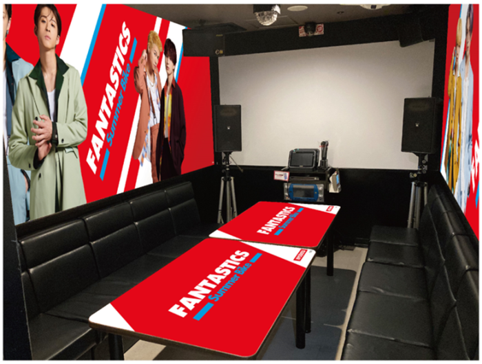 JOYSOUND渋谷南口駅前店(東京)・JOYSOUNDなんば戎橋店(大阪)に展開するカラオケコラボルームは、ルーム内の壁面やテーブル、ドアに至るまで、「FANTASTICS from EXILE TRIBE」の世界観で彩られ、ファンには堪らない空間となっております。