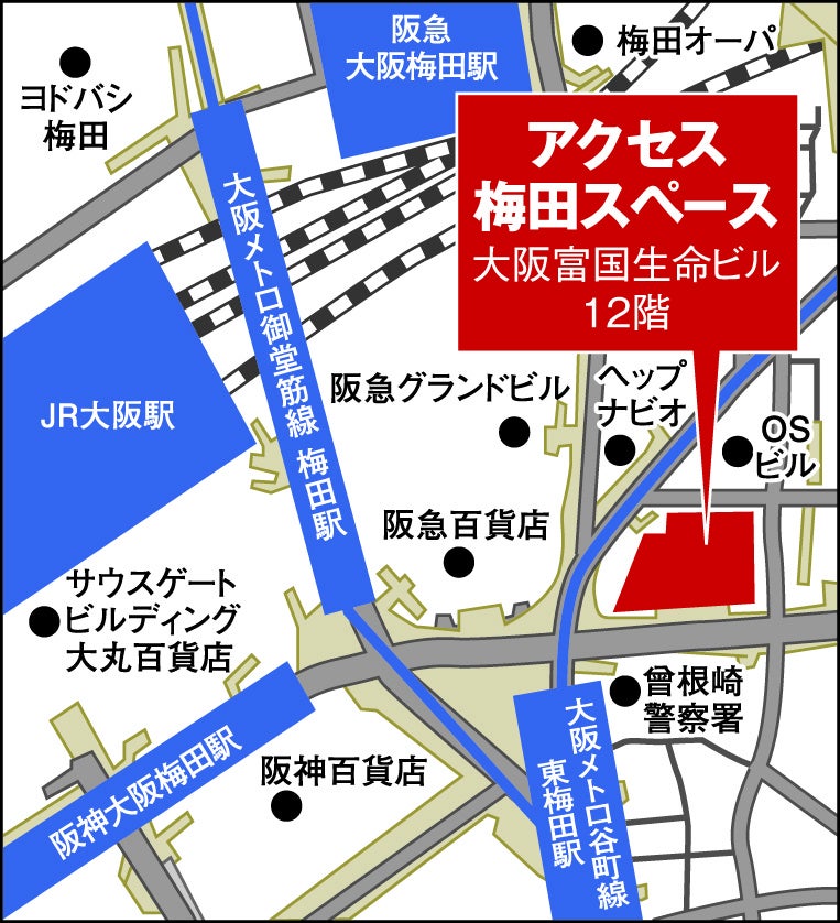 【会場】:アクセス梅田スペース(大阪市北区小松原町2-4 大阪富国生命ビル12階)