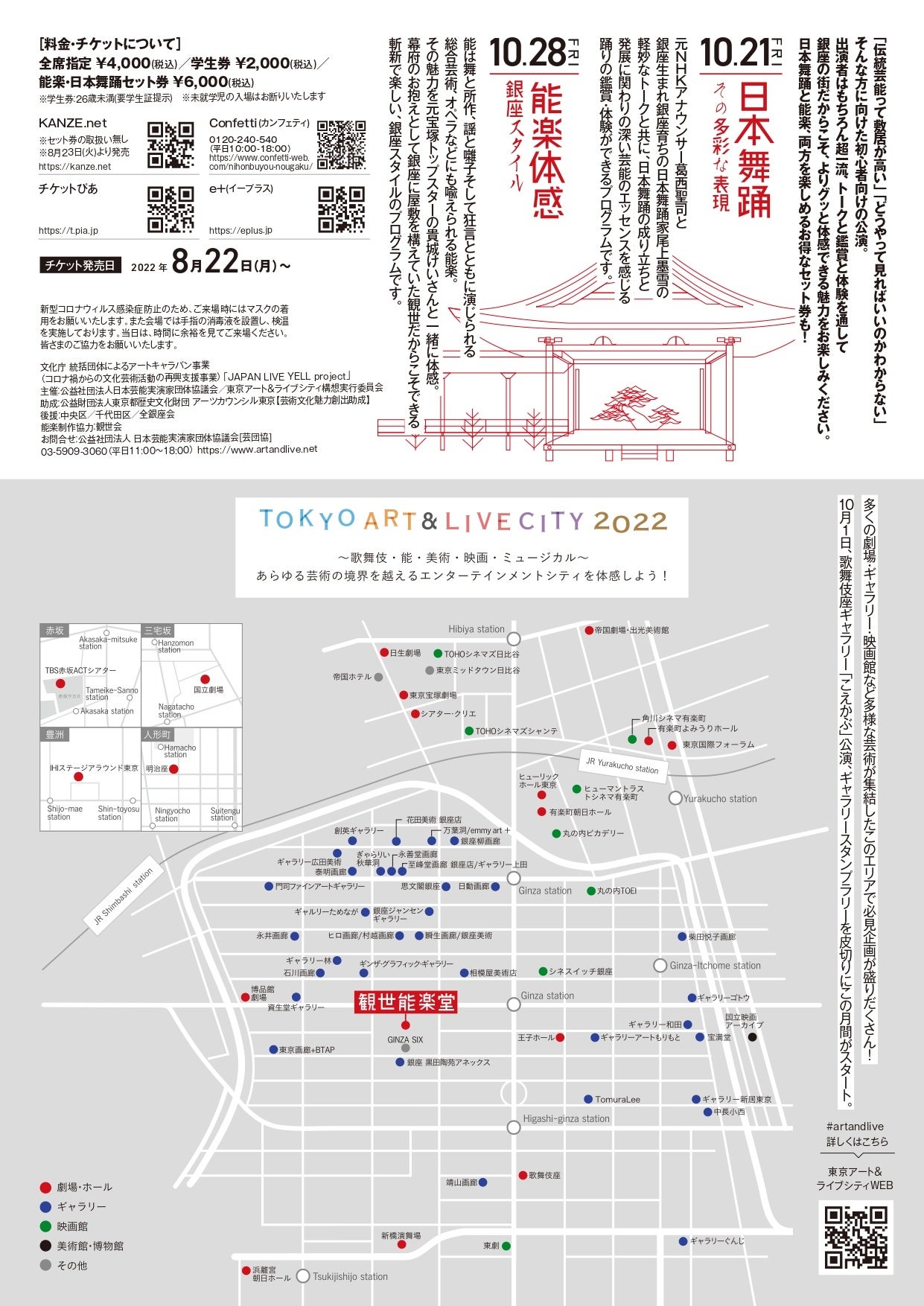 公益社団法人日本芸能実演家団体協議会主催、『日本舞踊~その多彩な表現~』が2022年10月21日(金)、『能楽体感、銀座スタイル』が2022年10月28日(金)に観世能楽堂 (東京都中央区銀座 6-10-1 GINZA SIX 地下 3 階)にて開催されます。