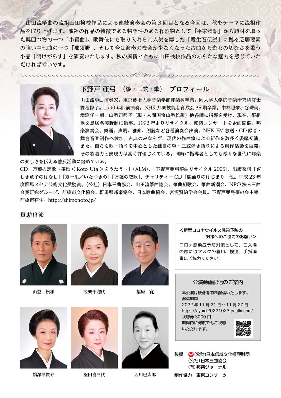 『下野戸亜弓箏曲リサイタルー山田検校作品連続演奏会Ⅲー』